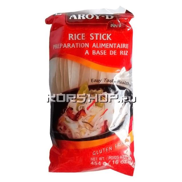 Тайская рисовая лапша торговой марки Арой-Д изготовлена из высококачественного риса, не содержит глютена, легко готовится, рекомендуется в диетическом питании.