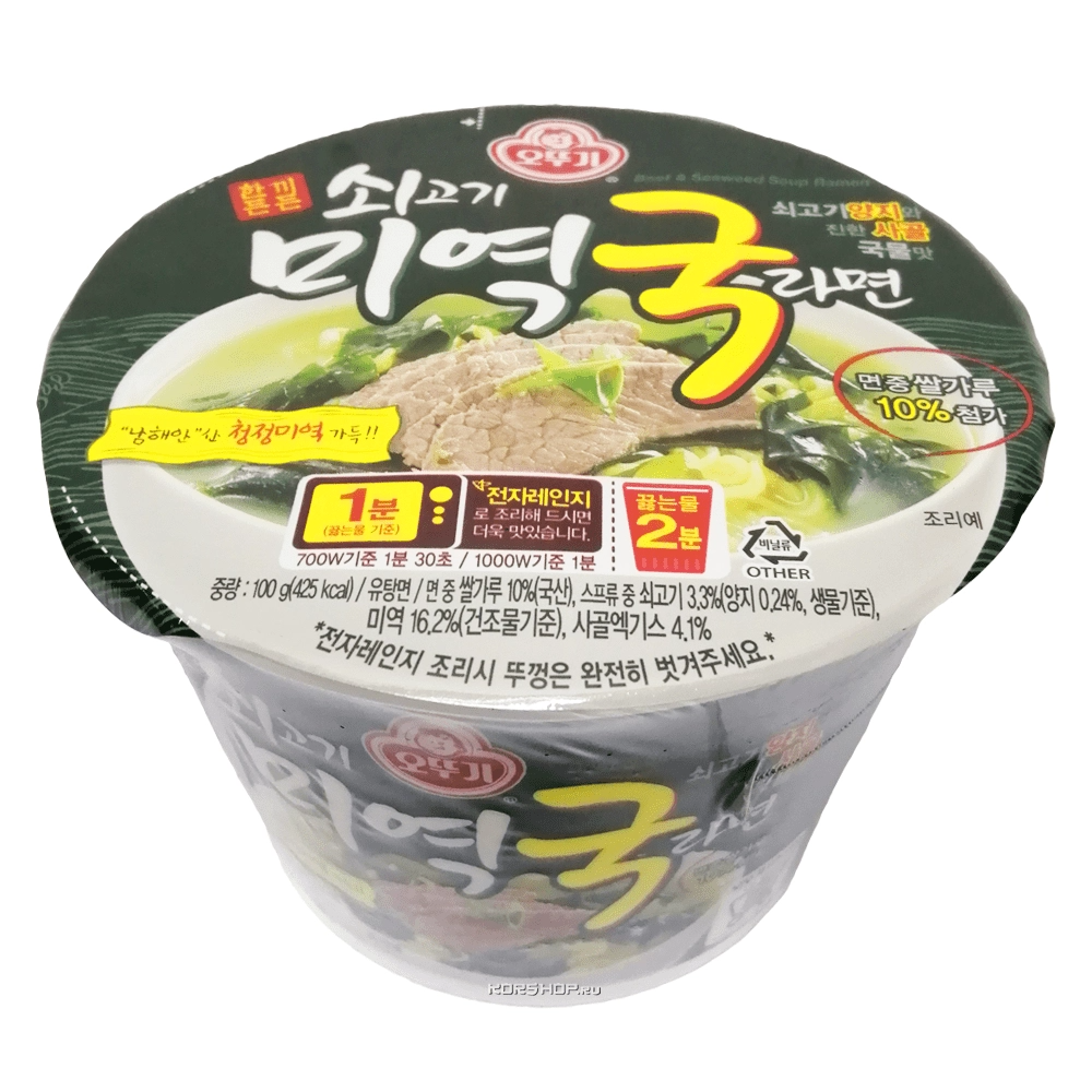 Лапша со вкусом говядины и морской капусты Миёккук Ottogi, Корея, 100 г (чашка) Акция