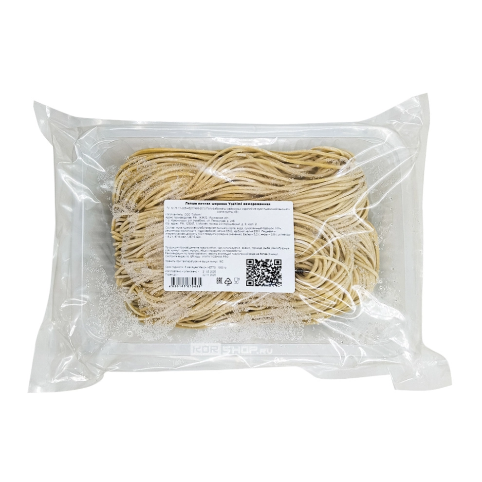 Лапша яичная широкая Yoshimi – готовая замороженная лапша из яиц и пшеничной муки высшего сорта. Чтобы ее сварить, потребуется всего 3 минуты. Яичная лапша очень популярна и в азиатских, и в западных кухнях – с ней готовят супы, запеканки, жаренные в воке блюда стир-фрай, тушат мясо и овощи, дополняют карри и подливами. Яичная лапша очень вкусна и с мясным фаршем, и с морепродуктами. Это отличный гарнир к жареной, тушеной и запеченной курице, рыбе, стейкам, шашлыку, котлетам, сосискам и фрикаделькам.