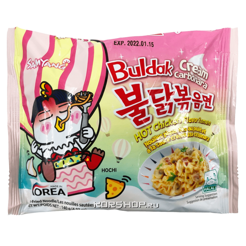 Острая лапша быстрого приготовления со вкусом курицы, соусами Бульдак и Карбонара от торговой марки Samyang доставит огромное удовольствие и подарит приятное чувство насыщения. С ней вам не придется долго стоять у плиты, чтобы обеспечить себя горячим обедом. Продукт соответствует стандарту Халяль.