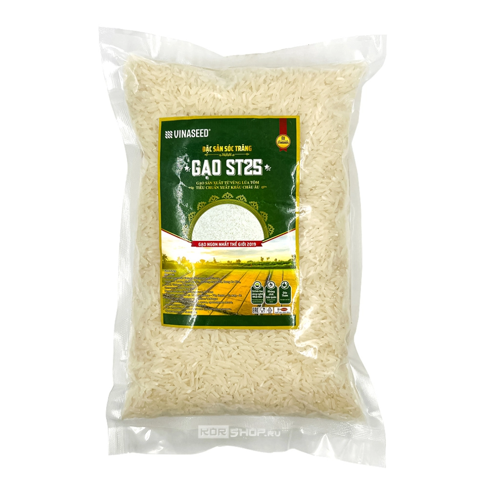 Рис Жасмин Gao ST25 производится во Вьетнаме и отличается длинными узкими зернышками, белоснежным цветом и благоухающим свежим нежным ароматом, который не теряется в готовом блюде. После варки белоснежный цвет риса сохраняется, а рис становится рассыпчатым. Во многих странах Юго-Восточной Азии именно рис жасмин выбирают в качестве гарнира к мясу, рыбе, морепродуктам, овощам. Он замечательно впитывает в себя соусы и подливки. Именно рис жасмин подают к тайским карри и супам (Том Ям и Том Кха). Этот рис очень вкусен даже просто в отварном виде, сам по себе. Нередко с ним готовят десерты, дополняя его кокосовым молоком и фруктами.