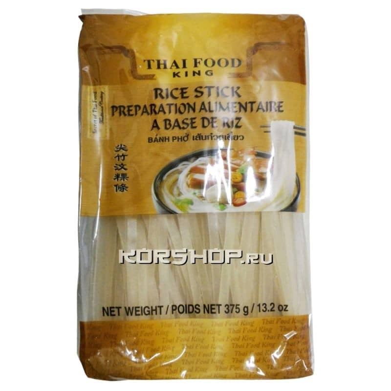Плоская и широкая рисовая лапша – это превосходный гарнир для блюд из мяса, овощей, сыра тофу и рыбы, а также хороший наполнитель для сытных азиатских супов. Она обладает нежным, деликатным вкусом и не содержит жира, поэтому является диетическим продуктом питания.