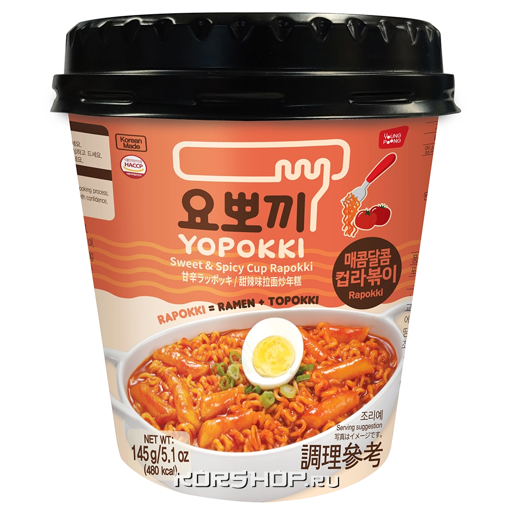 Рисовые клецки с лапшой (рапокки) в остро-сладком соусе Yopokki, Корея, 145 г Акция