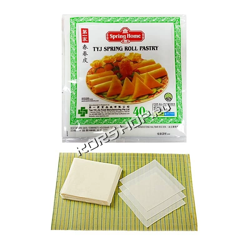 Тесто для спринг-роллов Spring Home позволит с лёгкостью приготовить одно из самых популярных азиатских блюд. В качестве начинки можно использовать жареное мясо, овощи, морепродукты, грибы, а также острую пасту Кимчи и другие специи. Тесто не содержит консервантов и красителей.