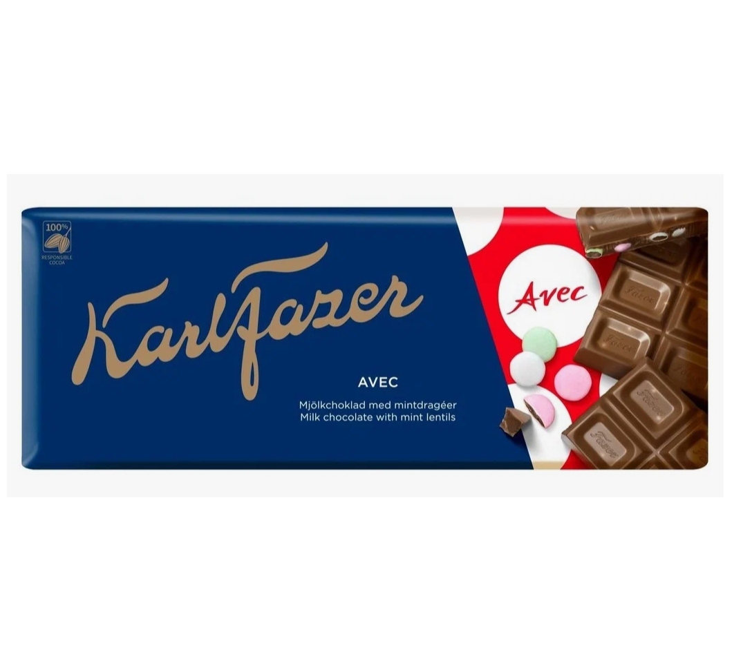 Шоколад Fazer Avec молочный с мятными драже 180 г