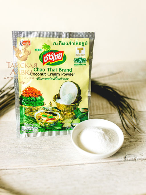 Продукт получают методом высушивания и измельчения мякоти созревшего кокосового ореха в порошок, при этом сохраняются все полезные свойства кокоса. Прекрасно размешивается и получается ароматное густое однородное кокосовое молоко без комочков. Можно использовать для приготовления блюд тайской кухни, например, супа Том-Ям, добавлять в привычные нам десерты или выпечку, а так же в чай или кофе вместо обычных сливок.