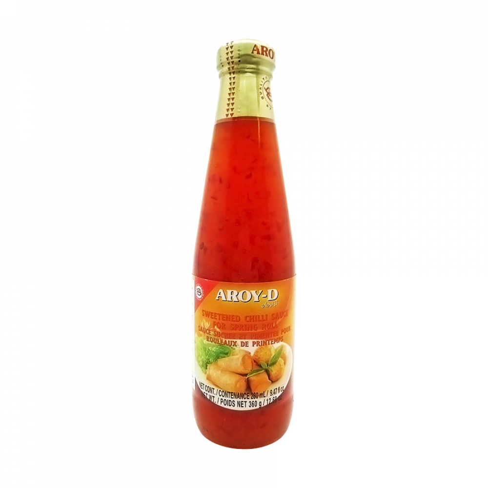 Сладкий соус чили для спринг-роллов Aroy-D- прекрасная приправа, которая идеально раскроет вкус оригинальных блинчиков из рисовой бумаги, в которых спрятана начинка из мяса, овощей или морепродуктов. Они являются традиционным блюдом китайской, японской, тайской и вьетнамской кухни и любимы жителями всей Юго-Восточной Азии. Приправа усиливает разнообразие вкусовых ощущений, её сладость и мягкие острые нотки гармонично дополняют друг друга и создают уникальное сочетание вкуса и пользы. Эта приправа незаменима, если вы приготовите блинчики из рисовой бумаги. Она подходит для сырых и жареных во фритюре спринг-роллов, и приятно дополняет вкус овощной или мясной начинки. Благодаря своему мягкому вкусу и умеренной остроте этот соус - универсален, и поэтому подойдет для заправки салатов, гарниров, разных вегетарианских блюд, а также пиццы и горячих бутербродов.