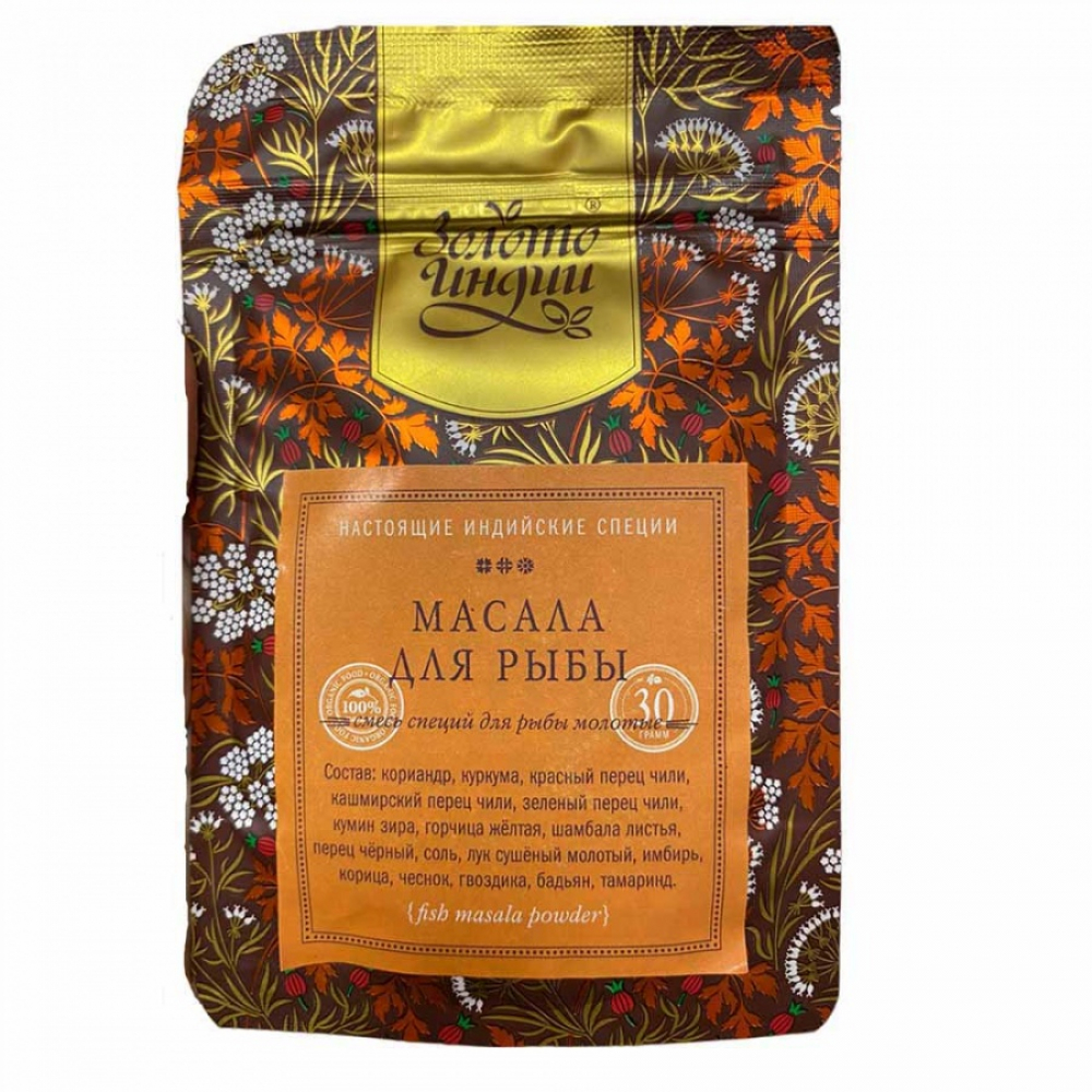 Эта уникальная растительная приправа, призванная раскрыть полностью вкус рыбы, усилив ее аппетитный аромат. Травы, входящие в состав приправы, насыщают и оздоравливают организм. Масала «Золото Индии» - прекрасная приправа для рыбных блюд, она придает готовому блюду умеренную остроту и наделяет рыбное блюдо незабываемым ароматом. Прекрасно подобранная смесь пряностей одинаково хорошо подходит также к первым и вторым блюдам.