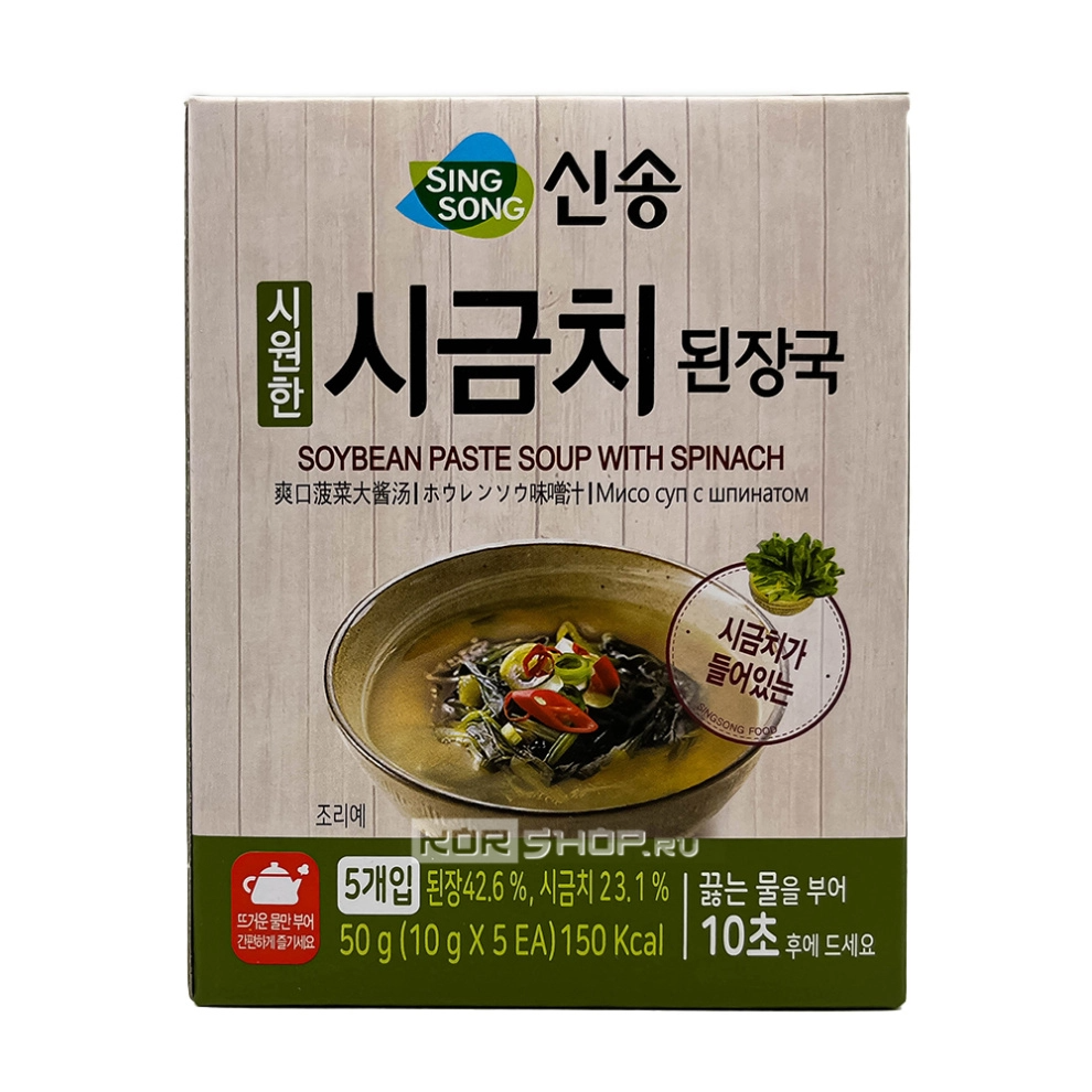 Мисо суп со шпинатом Soybean Paste Soup with Spinach Sing Song, Корея, 50 г (5 шт *10 г) Акция