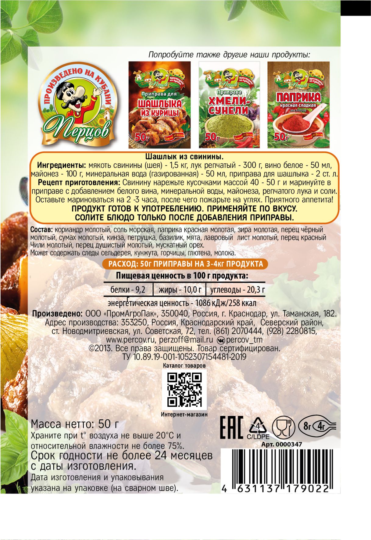 Отзывы и вопросы о товаре «Приправа для Шашлыка 50гр.»