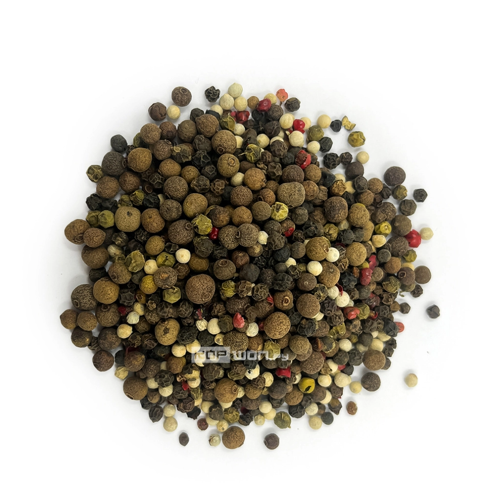 Ароматная и универсальная приправа гарантированно добавит остроты, пряности и пикантности в ваши любимые блюда. Она состоит из 5 перцев различных видов. Это черный, душистый, белый, розовый и зеленый перцы.