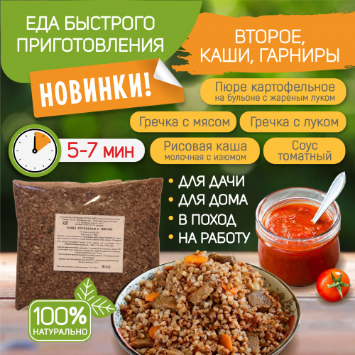 Идеально подходит для питания военнослужащих, домашнего приготовления, охотников и рыболовов, туризма, дачников, а также в условиях отсутствия возможности готовить горячую пищу.