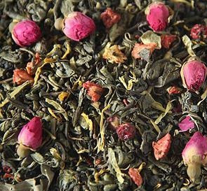 Зеленый чай с кусочками персика и бутонами роз, пропитанный густым ароматом спелых персиков, цветущих роз и сладкого винограда.НОВИНКА!!!