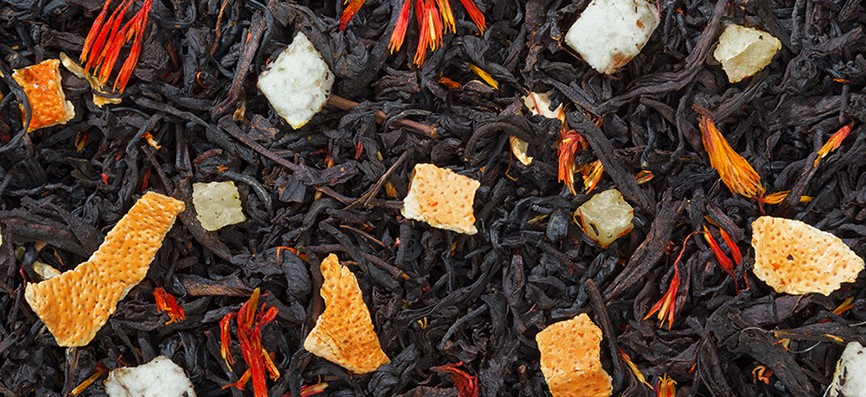 Китайский зеленый чай с кусочками ананаса, яблока, плодами шиповника, лепестками сафлора с ароматом айвы и сливок.