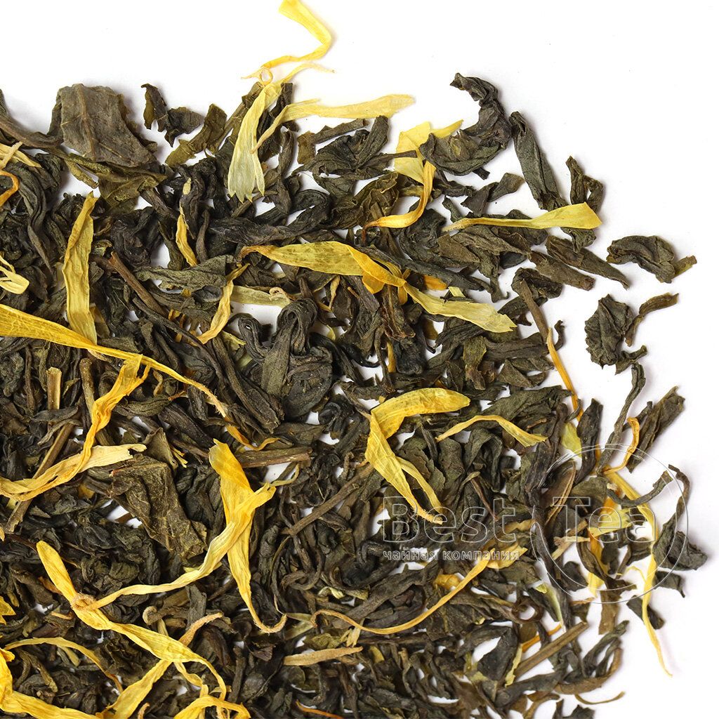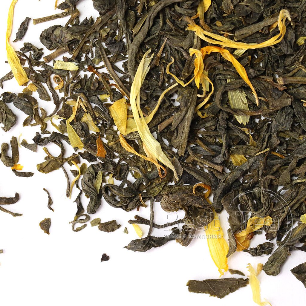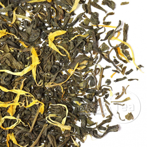 Простое и одновременно таинственное сочетание лепестков календулы и зеленого китайского среднелистового чая, дополненное ярким экзотическим ароматом сметанного яблока выбор настоящего гурмана. Продолговатые листья чая в сочетании с жёлтой календулой такой же формы стройно впишутся в мировосприятие эстета. Чай прекрасно подходит для утренней и вечерней церемонии, создает особое настроение и дружелюбную атмосферу. Янтарный тон с нотками золота наполнит тело и разум полным упоением. Состав: Чай зеленый китайский среднелистовой, лепестки календулы, аромат саусепа. Количество чая: 2 чайные ложки Объем и температура воды: 450 мл., 90-98 С Время заваривания: 2-5 минут