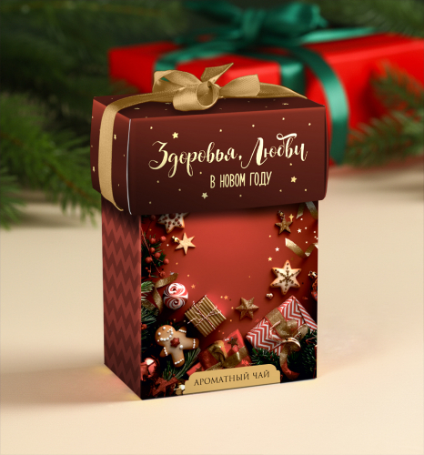 Чай в подарочной упаковке "С Новым годом (дед Мороз в домике)", чёрный с чабрецом, 50 г. (с бантиком)