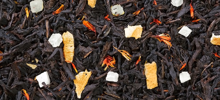 Ароматный черный чай с кусочками ананаса, лепестками сафлора и цедрой лимона с ароматом экзотических фруктов и клубники с легким сливочным оттенком.