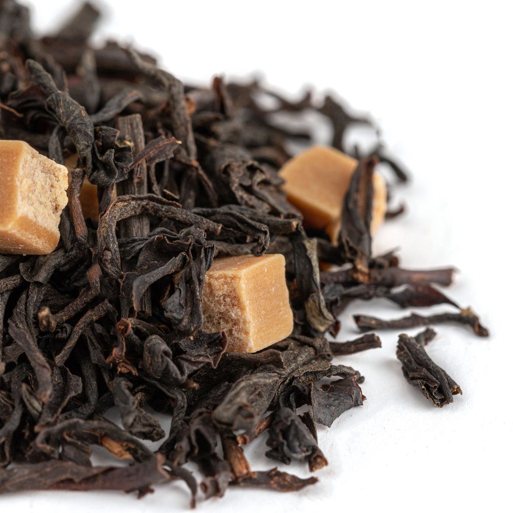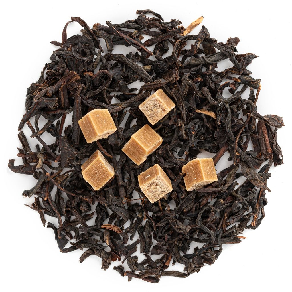 Состав: Чай черный индийский, карамель кусочки, аромат "Английская карамель"
