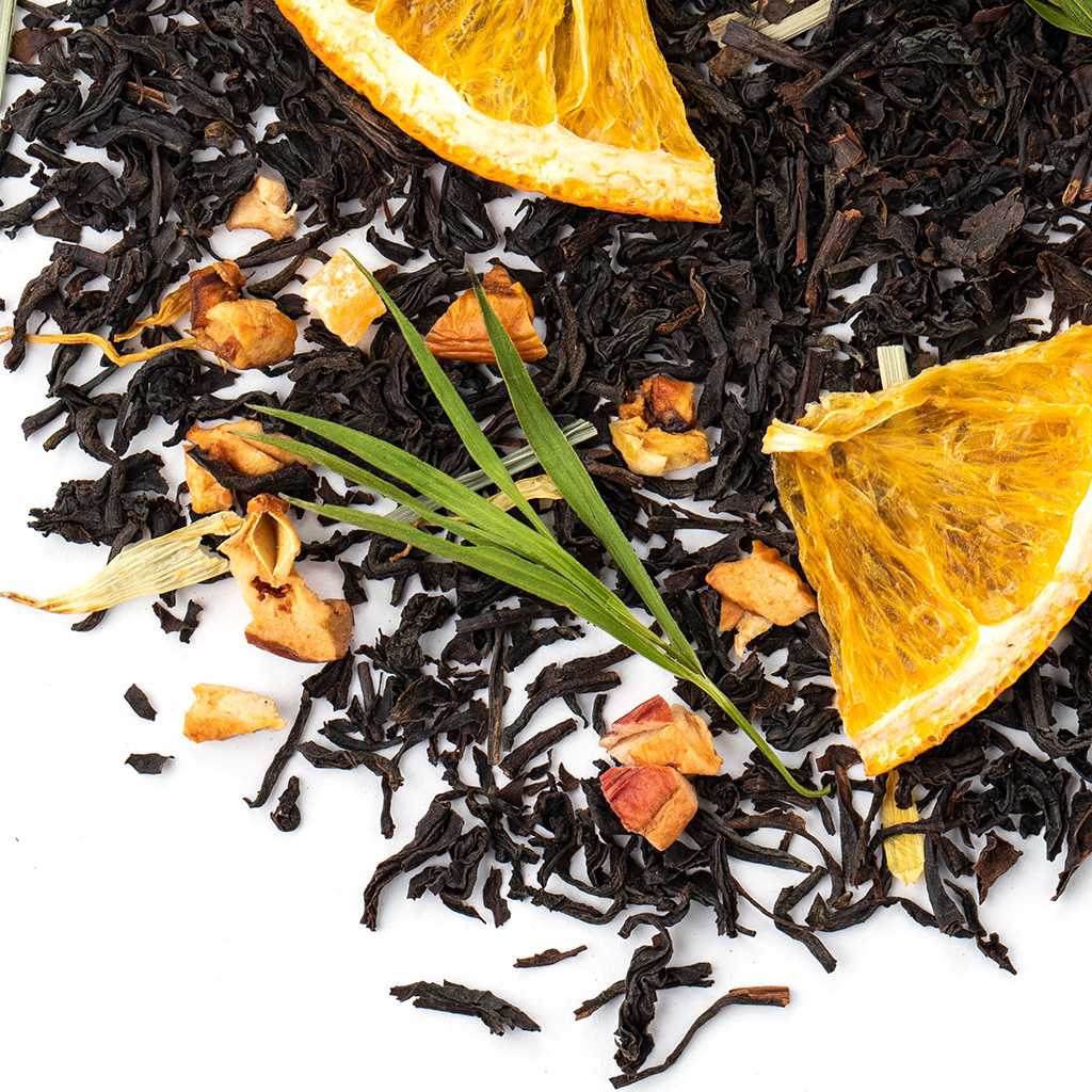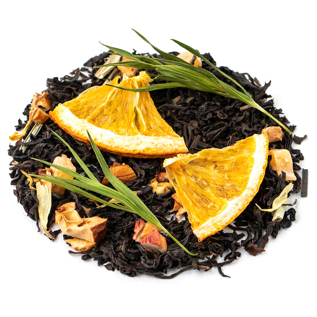 Состав: Чай черный индийский, яблоко кусочки, ананас цукаты, апельсин сегмент, лимонная трава, календула лепестки, бамбук листья. аромат "Экзотический микс".
