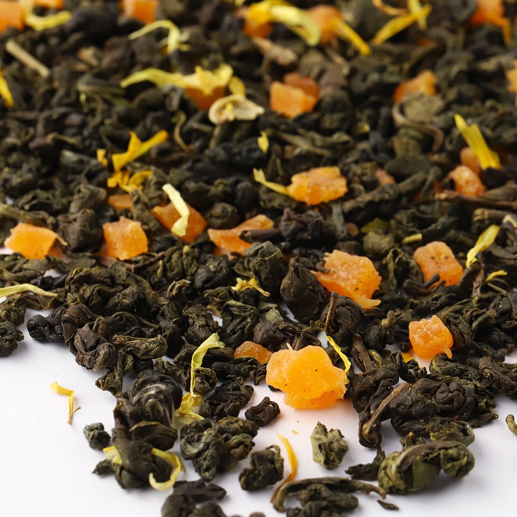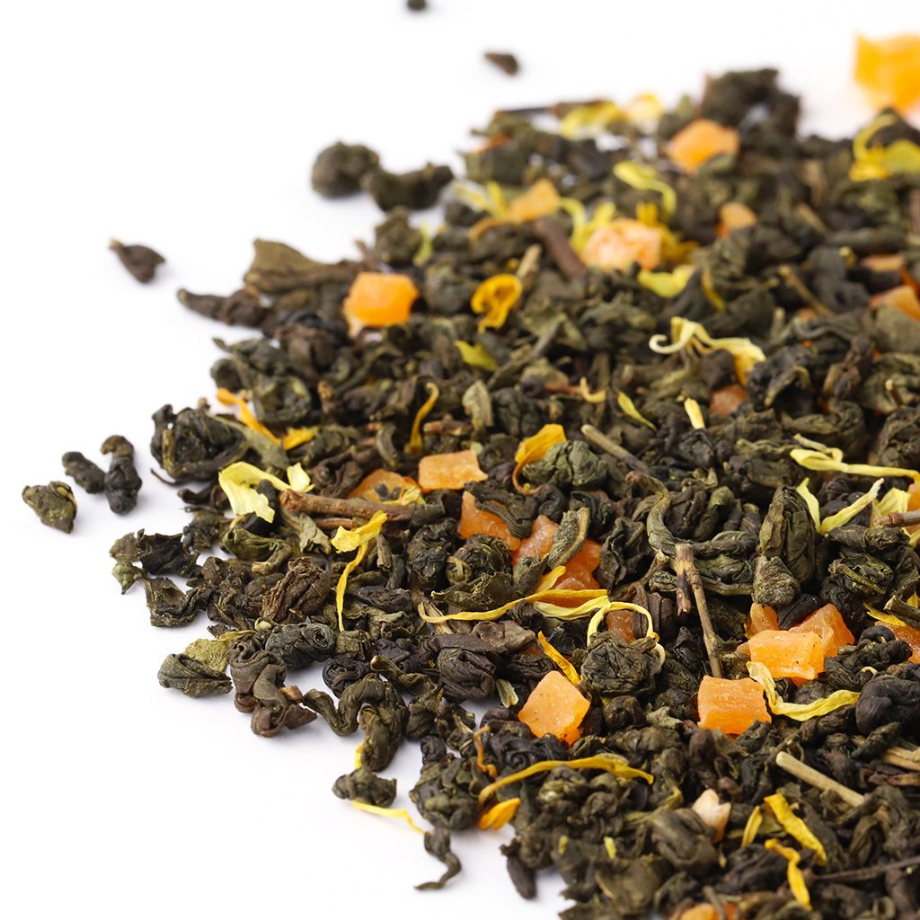 Плотно скрученные листочки зеленого китайского чая дополнены кусочками ананаса с лепестками календулы. Фруктовые кусочки и лепестки желтых и оранжевых тонов сияют солнечными бликами на россыпи чайного листа. Яркая тропическая сладость ананаса и мягкая горчинка зеленого чая насыщена обволакивающим ароматом манго и сливок. Вы можете купить высококачественный Зеленый чай Манго со сливками в интернет-магазине чайной компании BestTea оптом или в розницу, на выгодных условиях, с доставкой по России и СНГ. Количество чая: 2 чайные ложки Объем и температура воды: 450 мл., 90-98 С Время заваривания: 5 минут Состав Чай зеленый китайский, кусочки ананаса, лепестки календулы, аромат манго и сливок.