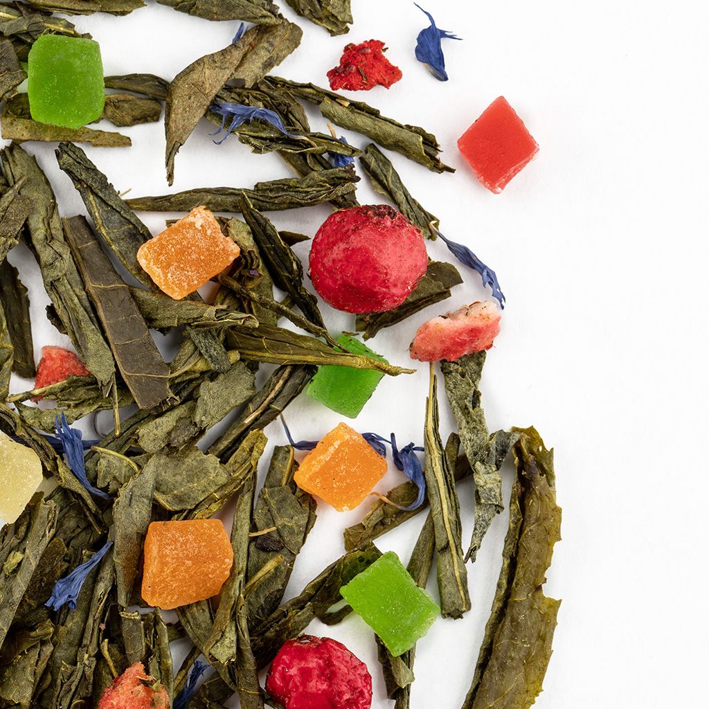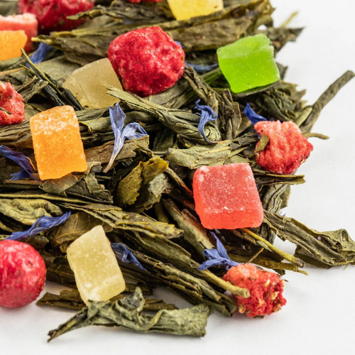 Благоухающий аромат лесной малины, тропическая свежесть ананаса и кислинка ягод накладываются на мягкое амбре зелёного чая особенного сорта. Ощущение жаркого влажного лета основная эмоция, возникающая после распития даже одной чашечки. Вы можете купить высококачественный Зеленый чай Мишки Гамми в интернет-магазине чайной компании BestTea оптом или в розницу, на выгодных условиях, с доставкой по России и СНГ. Количество чая: 2 чайные ложки Объем и температура воды: 450 мл., 85-90 С Время заваривания: 5 минут Состав Чай зеленый китайский, ананас кусочки, клубника кусочки, смородина красная ягоды, василек лепестки, аромат лесной малины.