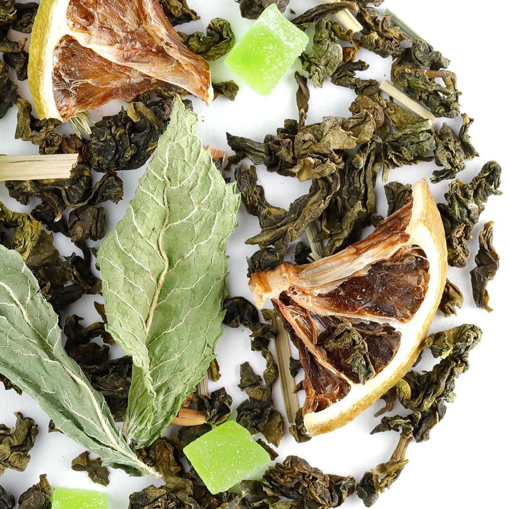 Состав Чай улун китайский, ананас кусочки, лайм сегменты, лимонная трава, мята