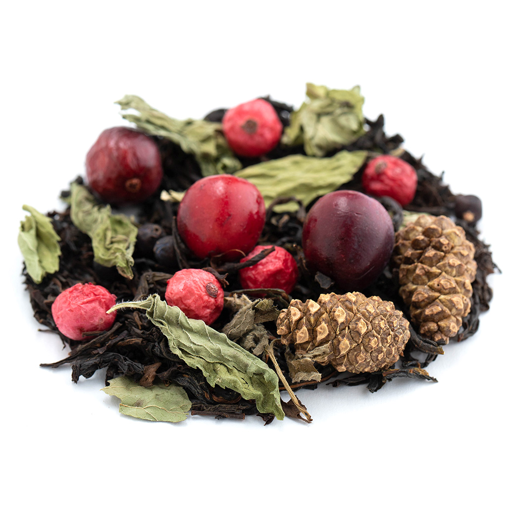 Состав: чай черный индийский, иван-чай, шишки сосны, смородина красная ягода, клюква ягода, можжевельник плоды, мята, аромат хвойного леса