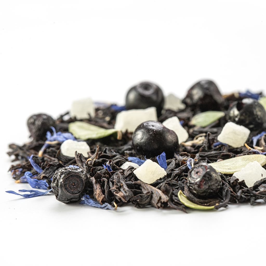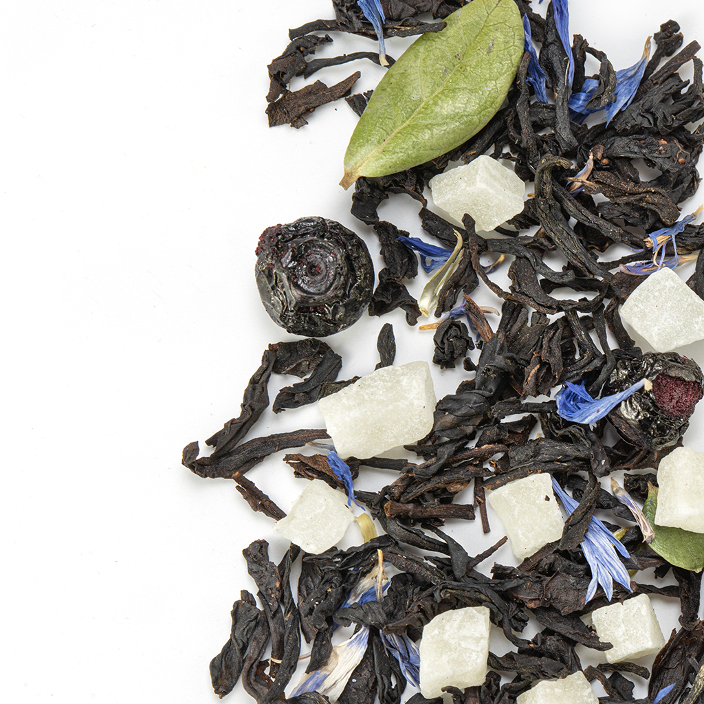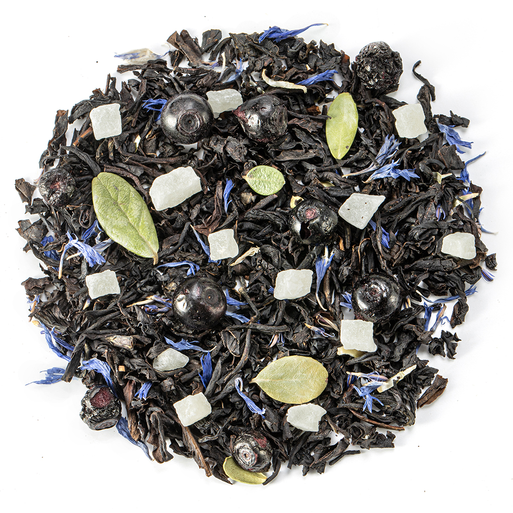 Состав Чай черный индийский, кусочки ананаса, ягоды черники, лепестки василька, листья брусники, аромат лесных ягод