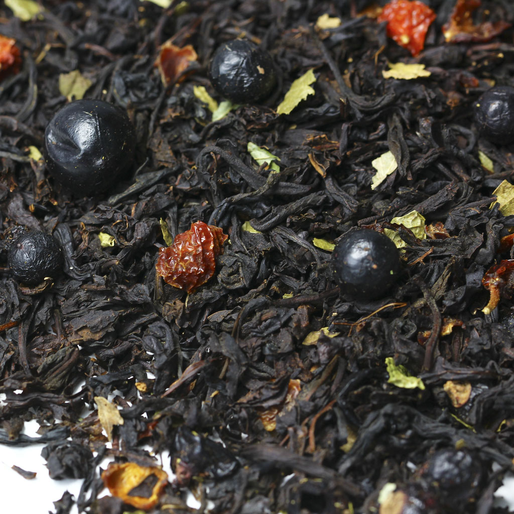 Измельченные плоды шиповника и ягоды черной смородины создают очаровывающий вкус, основой для которого является смесь чёрного чая, взросшего на плантациях солнечного Цейлона. Сухая смесь из вкраплений от коричневого до черного с небольшой долей элементов зеленого отлично сочетается с источаемым ароматом черной смородины. Бархатистый вкус заслуга отборного индийского чая, а сладковато-пикантный привкус смородины выгодно подчеркивается кислинкой измельченных плодов шиповника. С каждым глотком чая мысли устремляются прочь из мегаполиса, к уютной деревенской жизни с упоительным запахом ягод на крыльце. Если заварить этот чай правильно, то напиток будет богат янтарным оттенком с переливами золота. Состав: Чай черный цейлонский, плоды шиповника измельченные, ягоды черной смородины, листья смородины, аромат черной смородины. Количество чая: 2 чайные ложки Объем и температура воды: 450 мл., 90-98 С Время заваривания: 2-5 минут