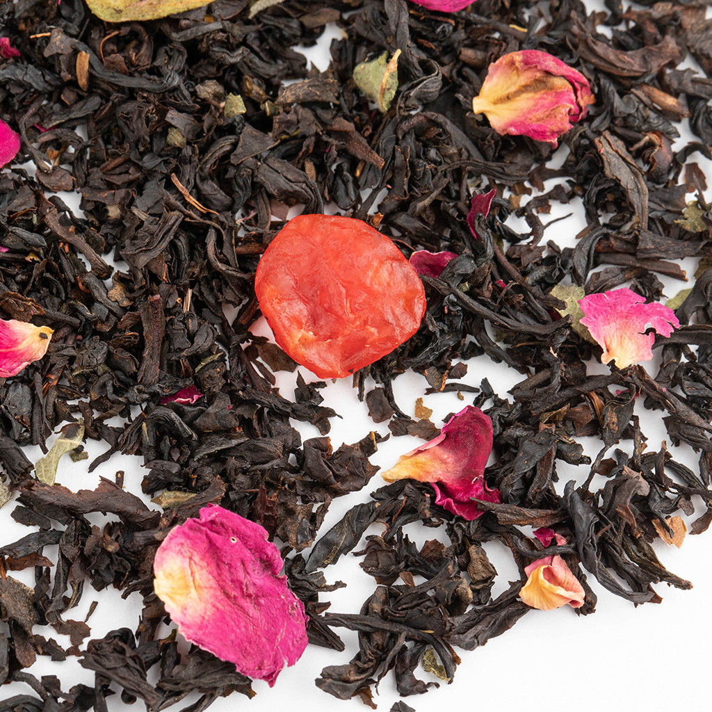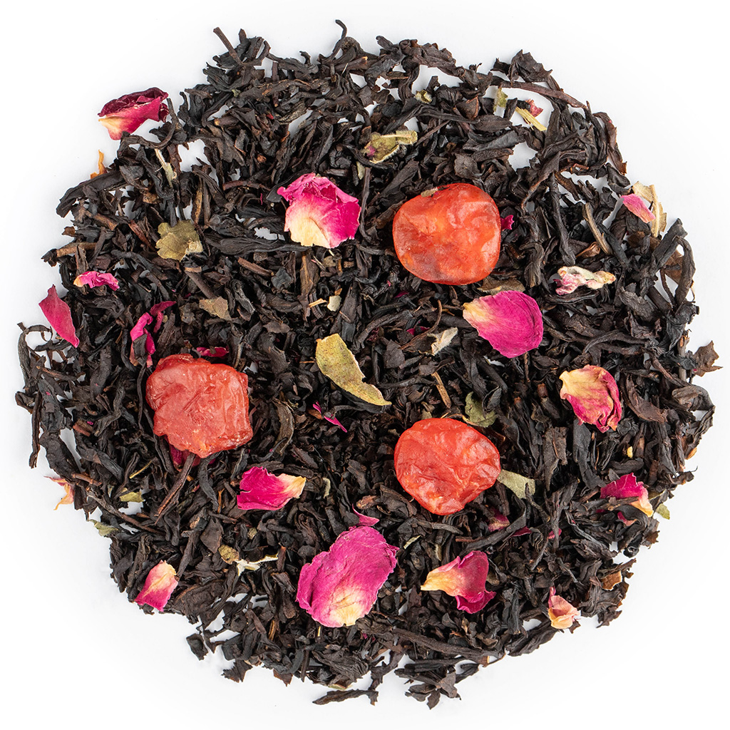 Чай черный китайский, ягоды вишни, лепестки розы, листья ежевики, аромат дикой вишни