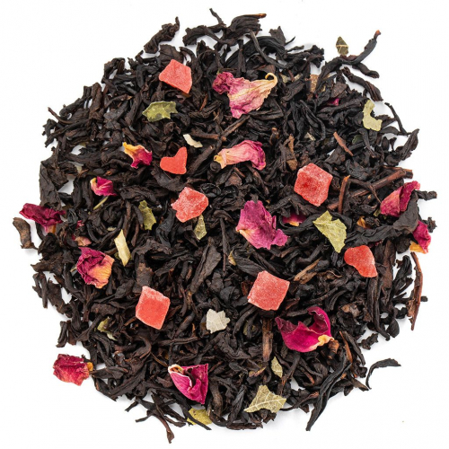 Бархатистое сочетание ананаса, листьев смородины и лепестков роз создают в сочетании со смесью черных чаев оригинальный коктейль, напоенный ароматом вишни. Преобладающие черные и розовые тона сухого чая позволяют выбрать напиток по цветоощущениям. Акцент вкуса божественное сочетание спелого ананаса и лепестков роз, которые только подчеркивают природную горечь черного чая, придавая ей легкого сладковатого послевкусия. Вы можете купить высококачественный Черный чай Дикая вишня с ягодой Classic в интернет-магазине чайной компании BestTea оптом или в розницу, на выгодных условиях, с доставкой по России и СНГ. Количество чая: 2 чайные ложки Объем и температура воды: 450 мл., 90-95 С Время заваривания: 5 минут Состав Чай черный, кусочки ананаса, лепестки розы, листья ежевики, аромат вишни.