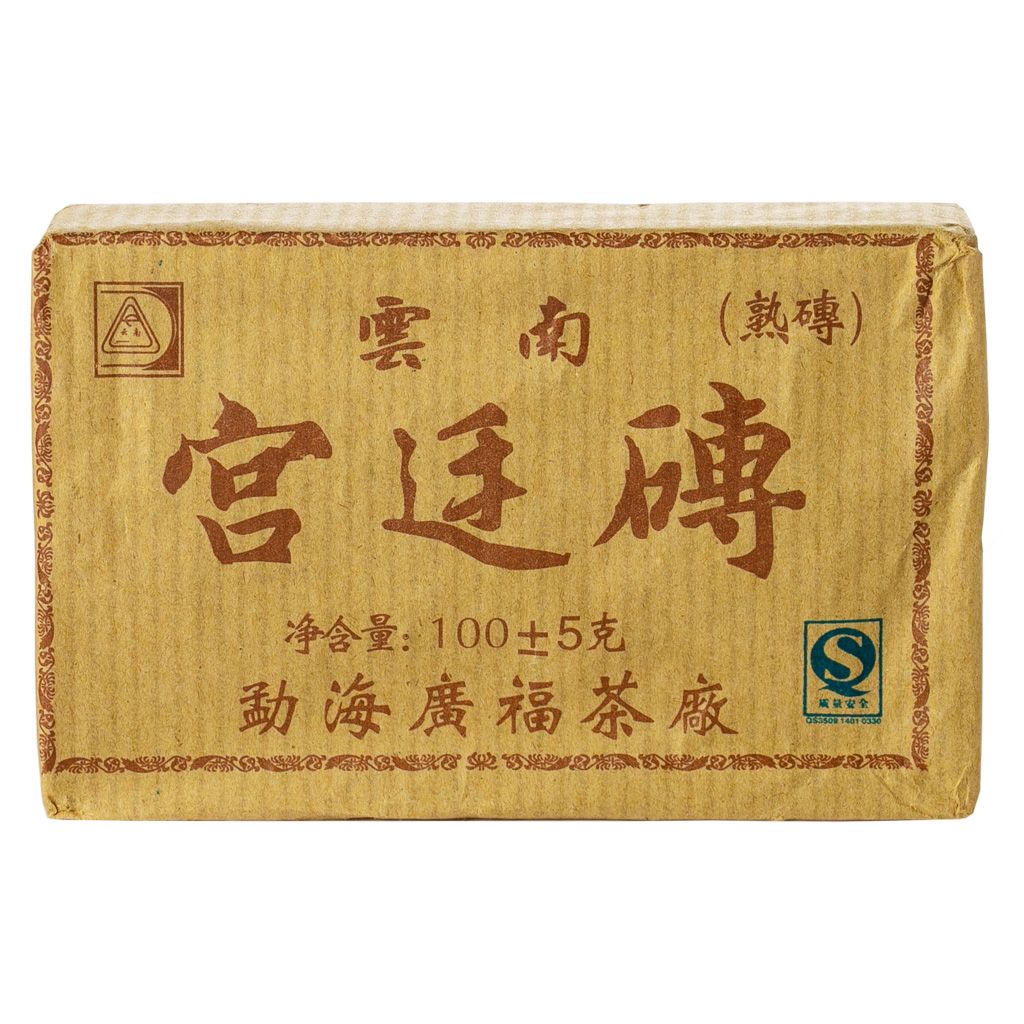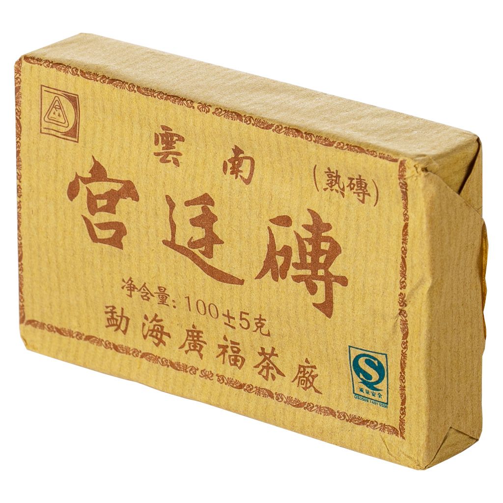 Элитный выдержанный сорт чая под названием Дворцовый производят по особым технологиям в провинции Юньнань. Для изготовления чая отбираются только отличного качества листочки, после обработки они спрессовываются в плитку весом 100 грамм. На плитке вытеснены иероглифы. Аромат готового напитка имеет орехово-фруктовую палитру оттенков. Вкус маслянистый, густой, с нотками шоколада, орехов и сухофруктов. Послевкусие долгое и приятное. Готовый настой обладает темно-коричневым цветом.