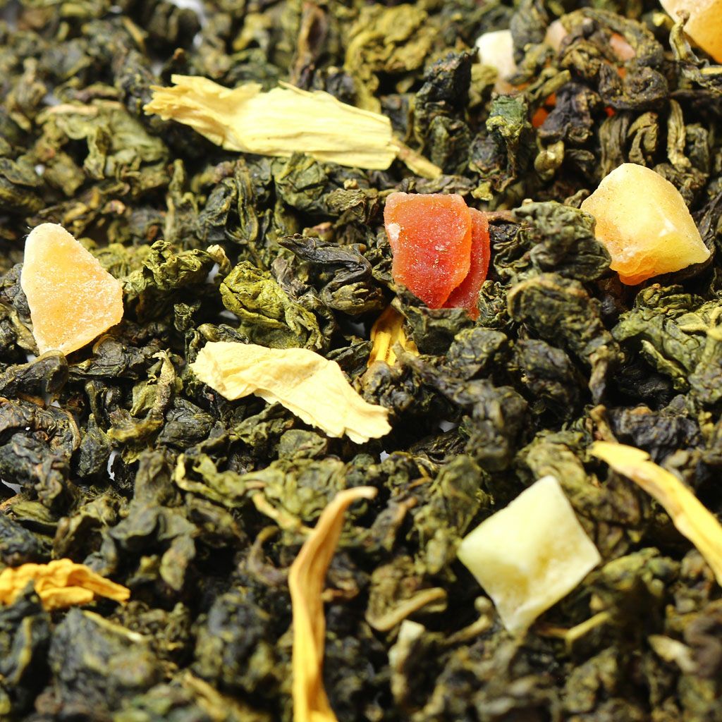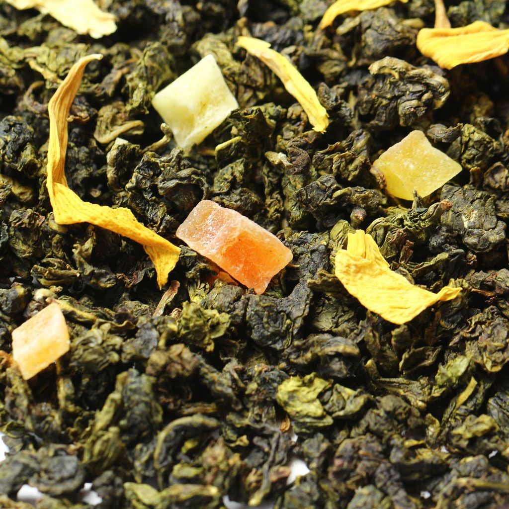 Чай зеленый китайский, кусочки папайи, лепестки подсолнечника, аромат дыни.