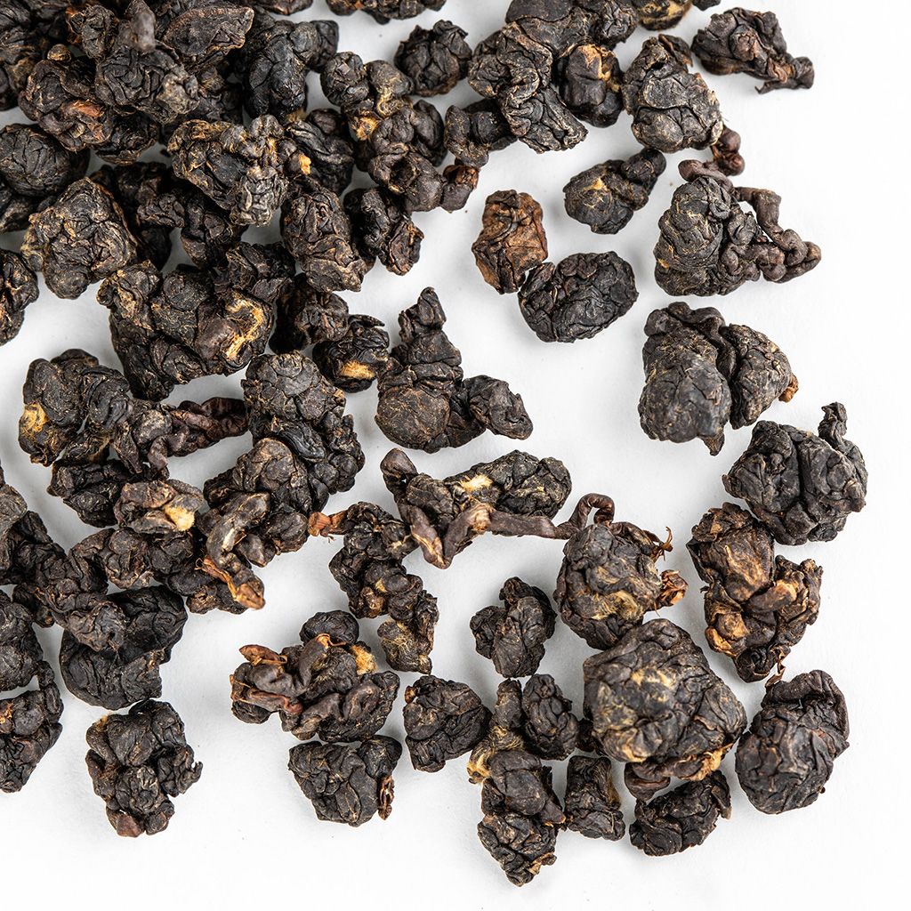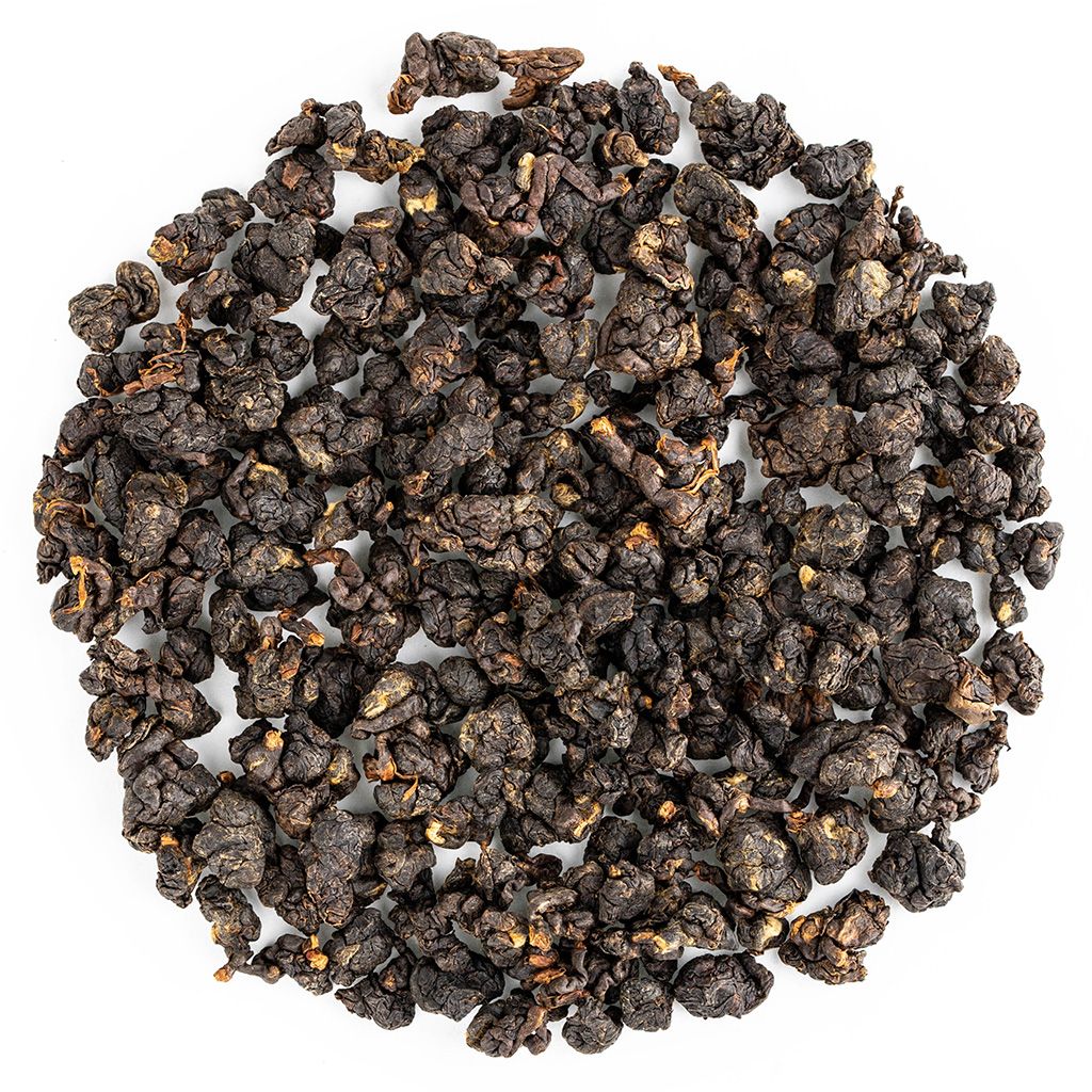 Темная россыпь туго скрученных чайных листочков с черенками окутана ароматом хлебной корочки. Настой обладает глубоким темно-янтарным цветом, хлебно-пряным ароматом и нежным сладковатым вкусом с приятным послевкусием.
