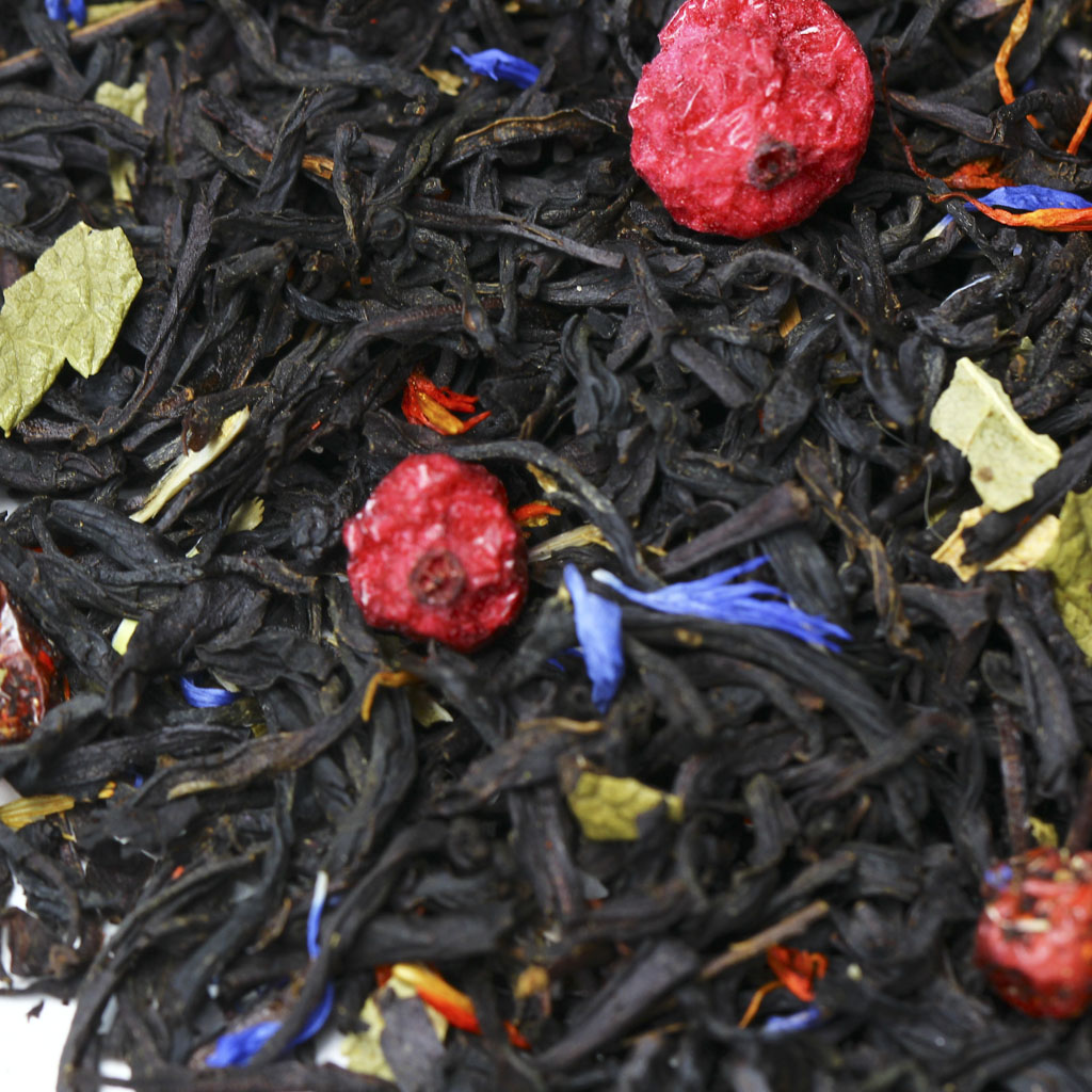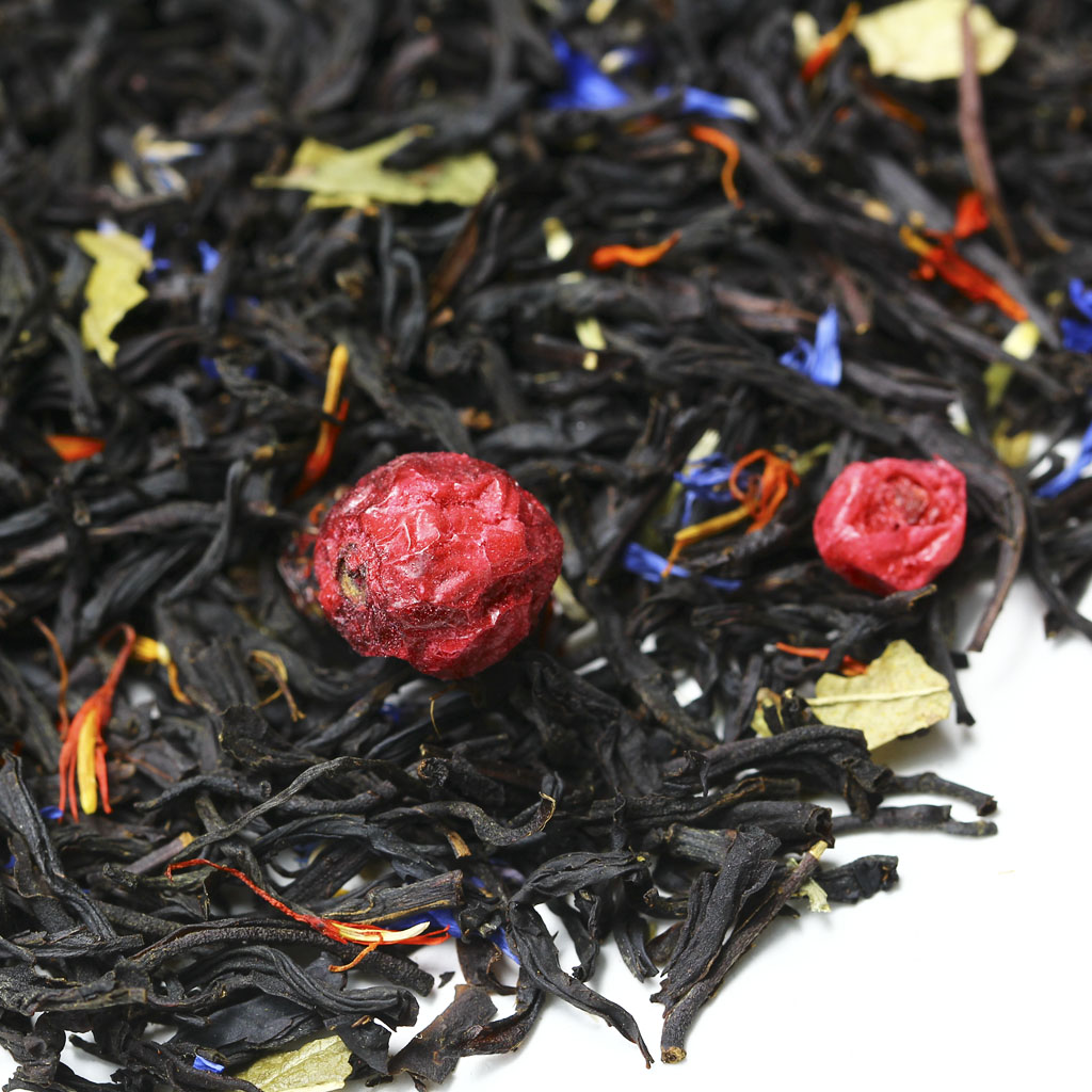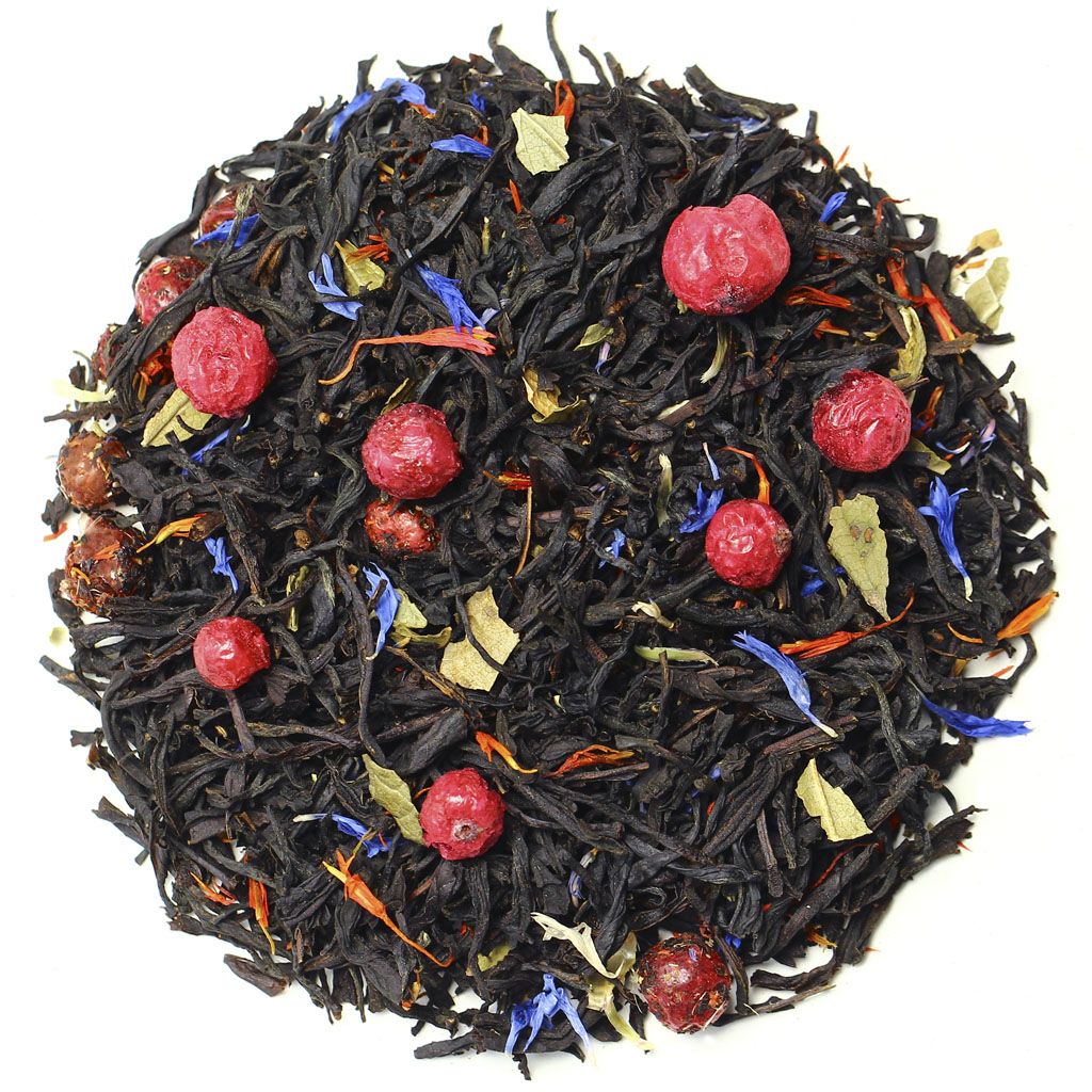 Черный индийский чай Ассам дополнен ягодами красной смородины, лепестками сафлора и василька, листьями смородины, аромат садовых ягод окутывает собой эту восхитительную композицию. Красные бусины ягод, штрихи синих и оранжевых лепестков и вкрапления зеленого рассыпаны на черном бархате чайного листа. Вкус готового напитка получает терпкость черного чая сочетаемую с фруктово-ягодной кислинкой и сладковатым послевкусием. Аромат содержит приятные ягодные нотки. Вы можете купить высококачественный ароматизированный черный чай с добавками Граф Орлов в интернет-магазине чайной компании BestTea оптом или в розницу, на выгодных условиях, с доставкой по России и СНГ. Состав Чай черный индийский Ассам, ягоды красной смородины, лепестки сафлора, лепестки василька, листья смородины, аромат садовых ягод.