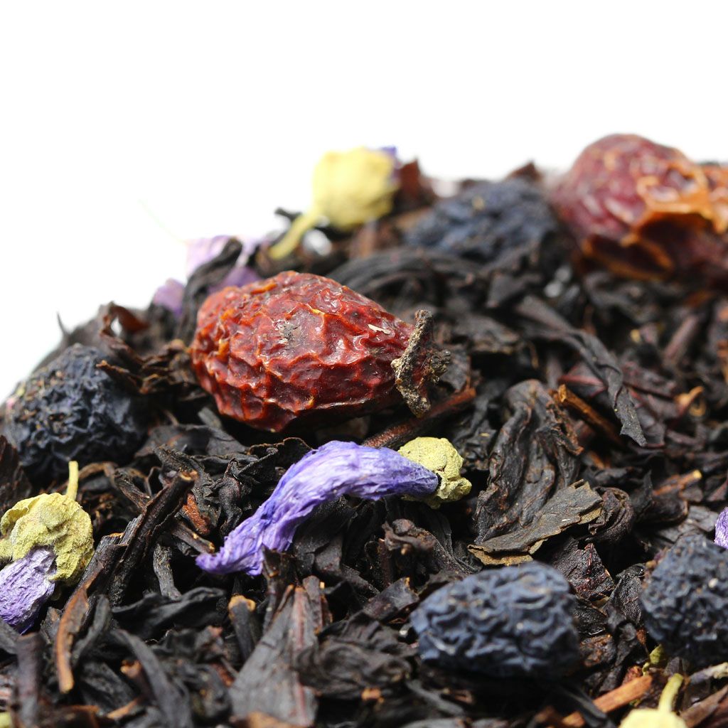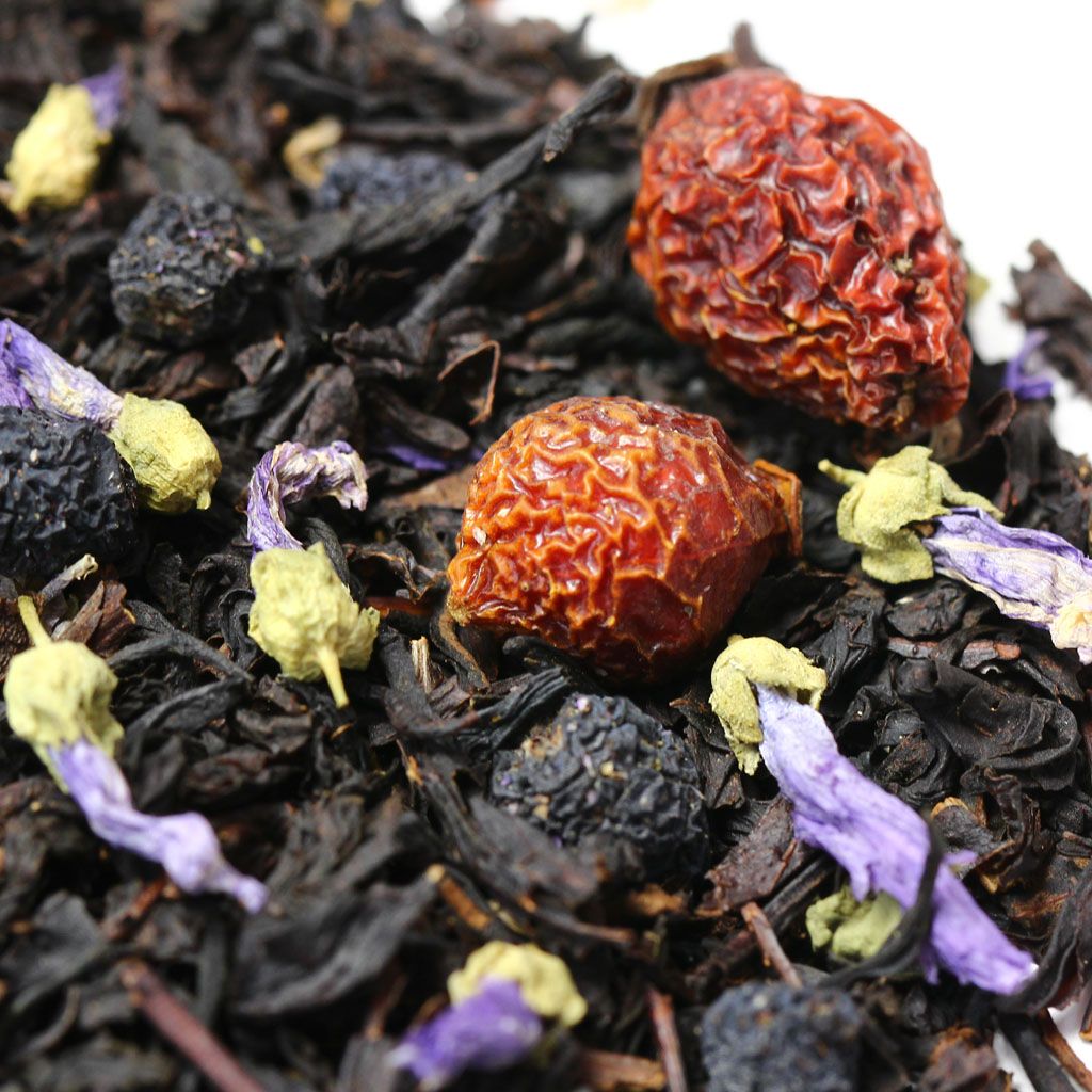 Бергамот как таковой, в этом напитке отсутствует. Плоды черноплодной рябины и шиповника в союзе с цветками мальвы выгодно подчеркнуты непревзойденным бархатным ароматом смеси черных чаев и благоуханием сливочного бергамота. Манит и вид смеси. Черный фон чая оригинально гармонирует с почти черными и темно-коричневыми ягодами, пленяющими синими лепестками. Эффектная композиция создается главным образом за счет сочетания терпкого и кисловатого вкусов. Первые дает смесь черных чаев, а вторые черноплодная рябина и шиповник. Бодрость, желание жить, творить и вдохновлять окружающих это эффект от приема чая. Глубокий красивый оттенок согревает одним своим видом. Количество чая: 2 чайные ложки Объем и температура воды: 450 мл., 90-98 С Время заваривания: 2-5 минут Состав Смесь черных чаев, плоды черноплодной рябины, плоды шиповника, цветы мальвы, аромат сливочного бергамота.