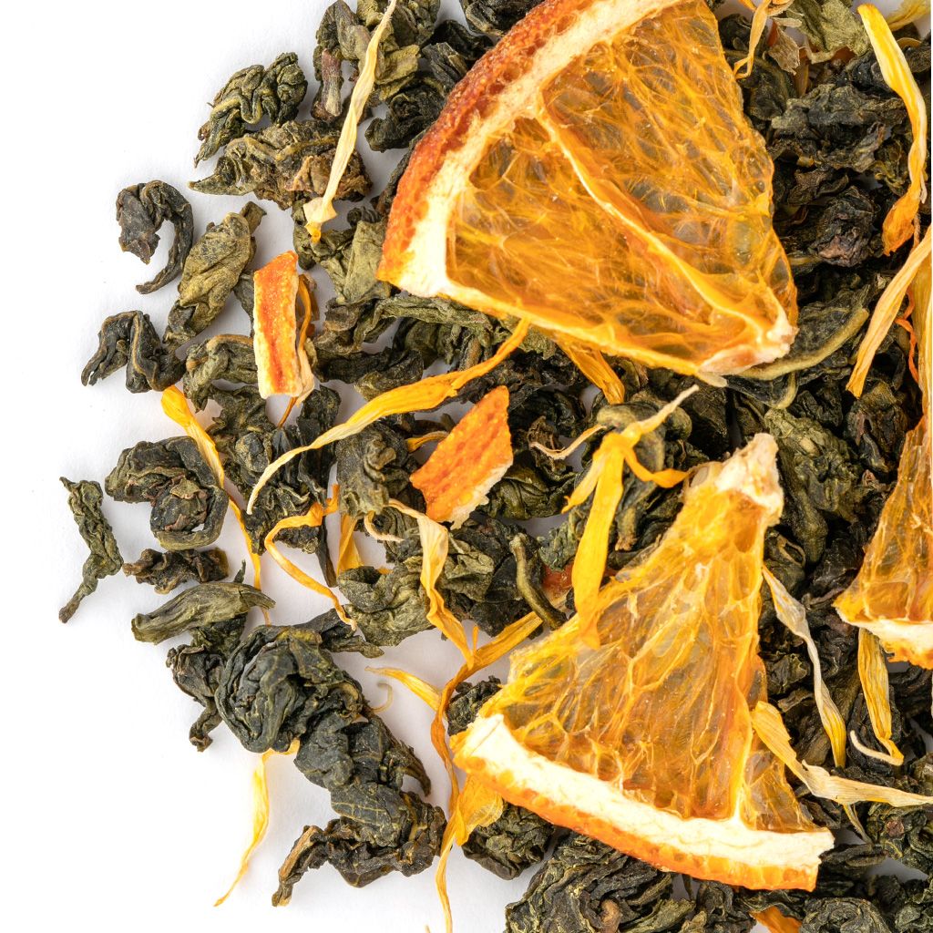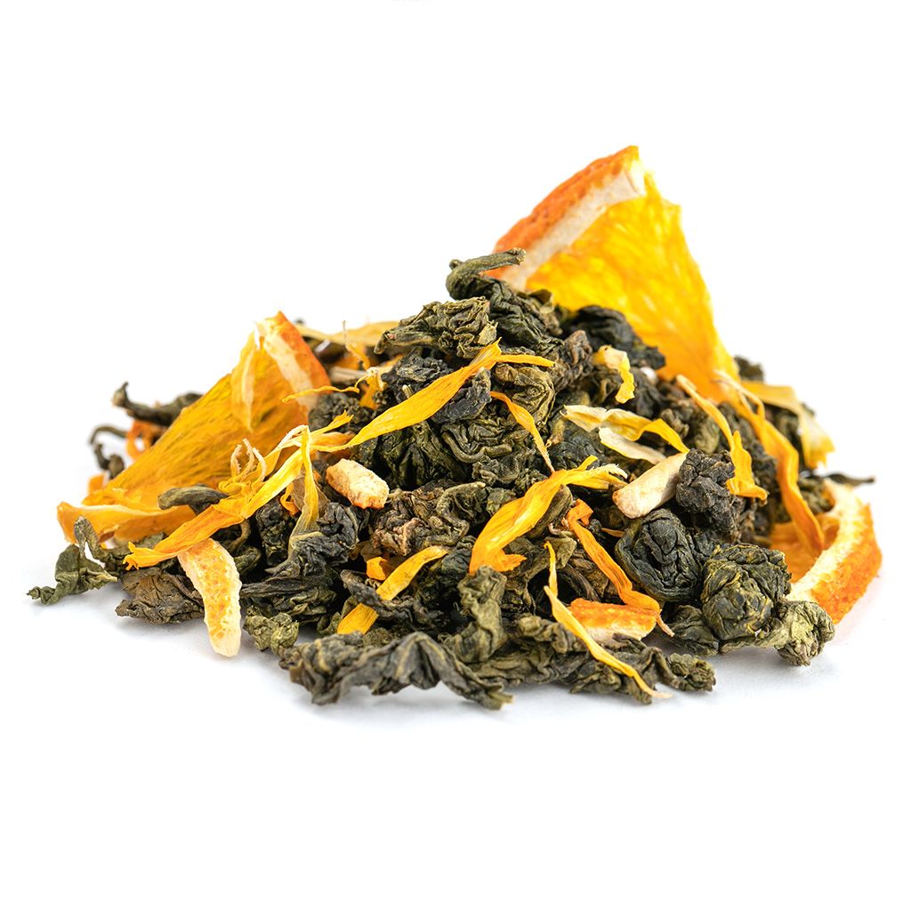 Цитрусовая свежесть цедры апельсина дополняет тонкое нежное прикосновение китайского улуна, приправленного лепестками апельсина, календулы и сафлора. Зеленый тон скрученного чайного листа эффектно оттеняет оранжевые кусочки апельсиновой цедры и цветочные лепестки. Цедра апельсина привносит в деликатный вкус улуна кисло-сладкую нотку с легкой горчинкой. Цвет готового напитка светло-золотистый с легким оранжевым оттенком. Улун благоухает ароматом красного апельсина Состав Китайский чай улун, цедра апельсина, цветы апельсина, лепестки календулы, лепестки сафлора, аромат красного апельсина