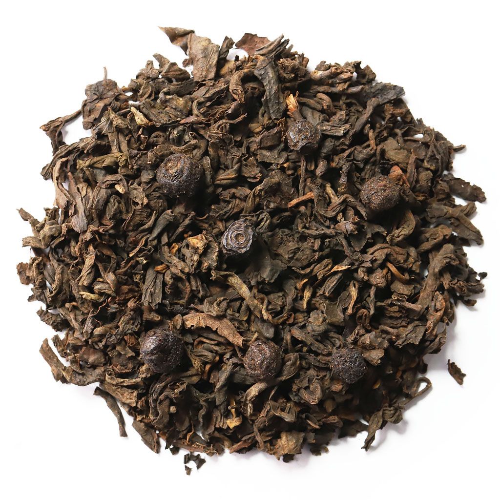 Мелколистовой темный пуэр, обладающий характерным теплым ароматом с пряно-грибными и древесными нотками, дополнен соблазнительным игривым звучанием спелой черники. В готовом настое густого коньячного цвета проявлен мягкий вкус с бархатной терпкостью с легкой черничной сладостью.