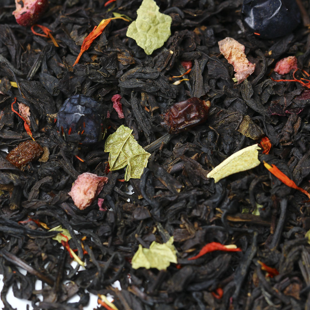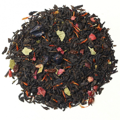 Черный индийский чай гармоничен сам по себе, но в сочетании с плодами красного и черного барбариса, кусочками клюквы, лепестками красного василька и листьями черной смородины раскрывается по-особому. Сухая смесь чая дополнена насыщенной зеленью листьев смородины, розовыми лепестками василька и красными ягодами. Леденцовый кисло-сладкий аромат барбариса гармонично звучит на фоне пряной смеси черных индийских чаев. Вкус напитка яркий, захватывающий и искрометный. Радует взор и красивый янтарный оттенок, гармонично сочетающийся с красноватыми полутонами. Вы можете купить высококачественный черный чай с добавками Спелый барбарис в интернет-магазине чайной компании BestTea оптом или в розницу, на выгодных условиях, с доставкой по России и СНГ. Количество чая: 2 чайные ложки Объем и температура воды: 450 мл., 90-98 С Время заваривания: 5 минут Состав Чай черный индийский, плоды барбариса, кусочки клюквы, лепестки сафлора, листья смородины, аромат барбариса.