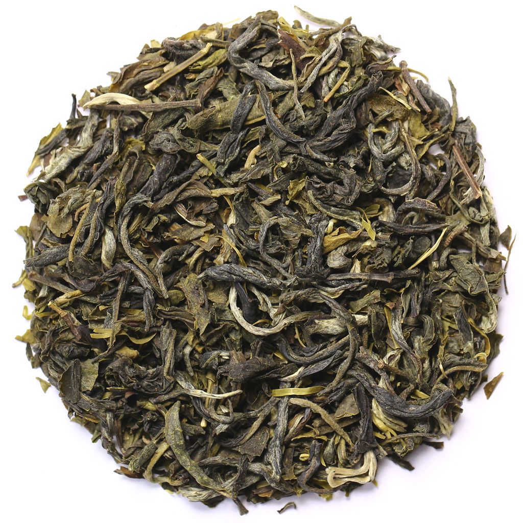 Сухая россыпь всех оттенков зеленого составлена из среднего слегка скрученного листа с некоторым количеством почек. Во вкусе проявлена мягкая травянистая терпкость с легким фруктово-ореховым оттенком. Настой прозрачно лимонный с зеленоватым отливом.