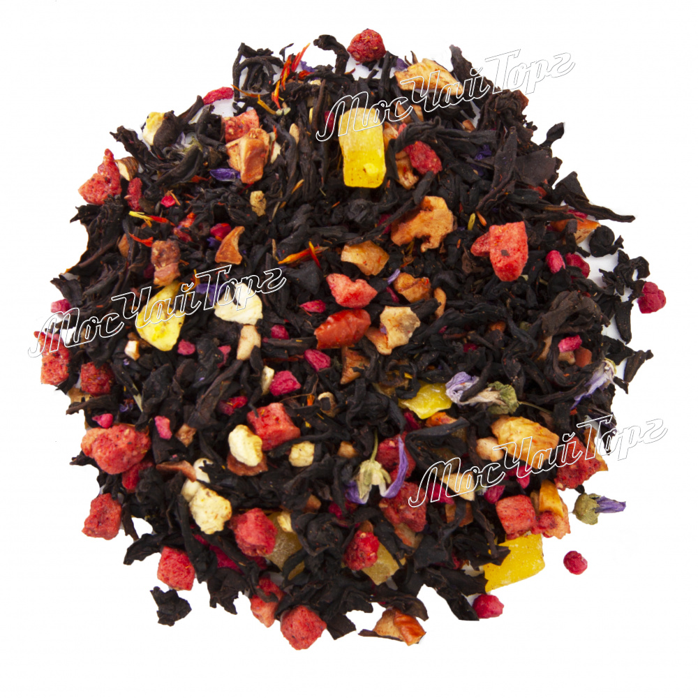 Чай индийский, кусочки клубники, кусочки малины, цветы мальвы, папайя, кусочки яблока, кожура лимона, лепестки сафлора, ароматизатор
