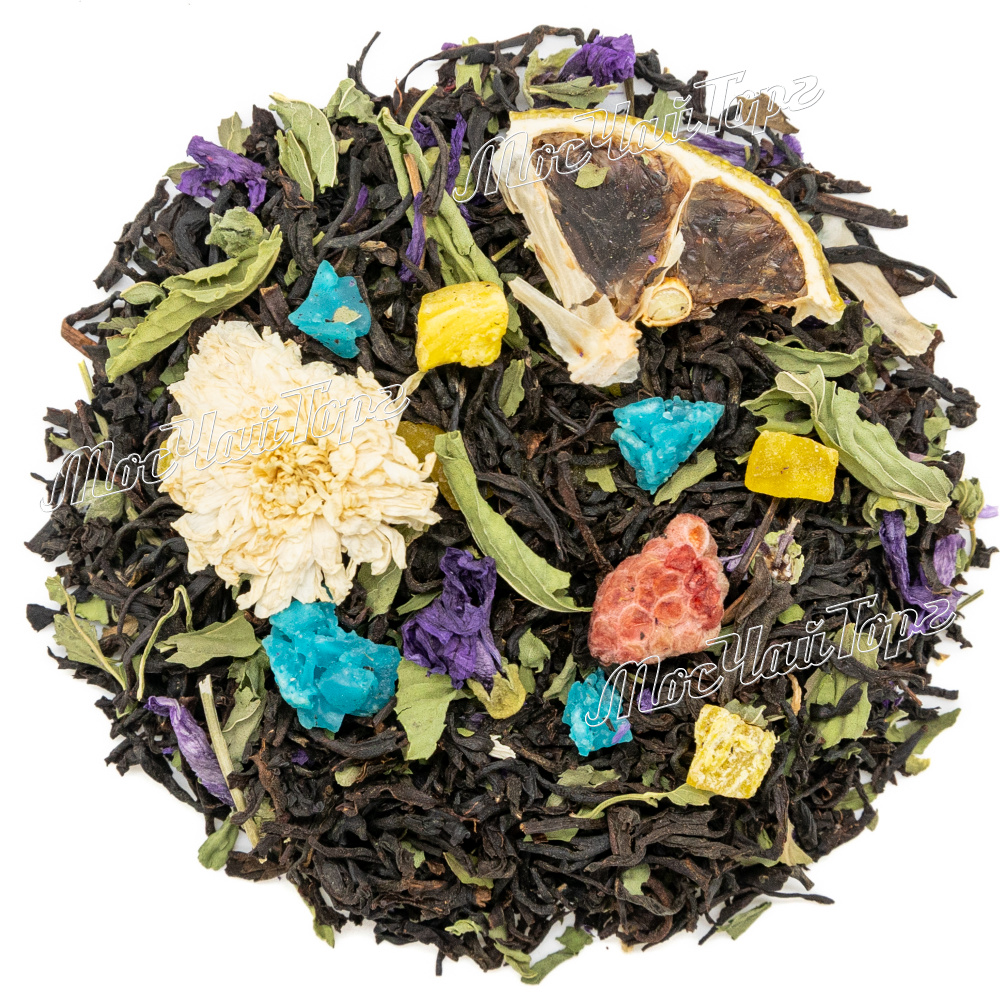 Черный чай - Снежная королева (чай черный индийский, мальва, цукаты, лимон дольки, мята марокканская, карамель синяя, малина, ароматизатор)