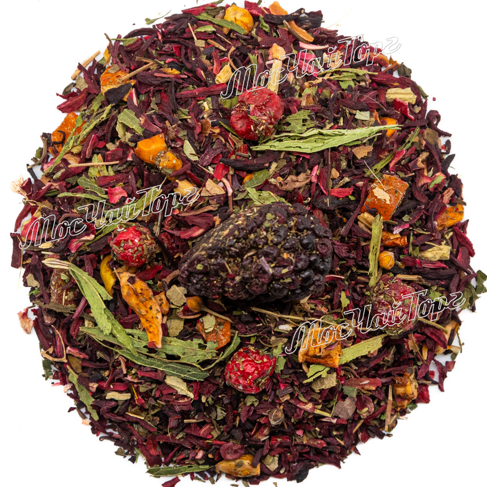 Фруктовый чай - Заряд лета (Гибискус, цукаты, ежевика, смородина красная, яблоки, липа, мята, листья стевии, ароматизатор)