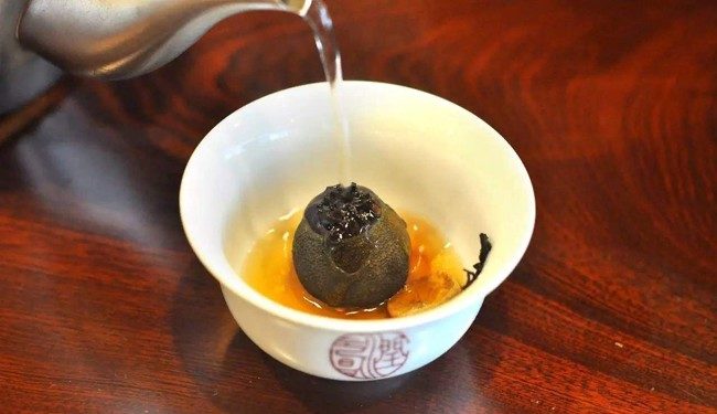 заваривают пуэр в мандарине