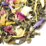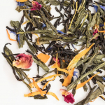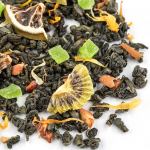 В состав зеленого чая "Японская Липа" входят купаж лучших сортов китайского зелёного чая, цедра апельсина, цветы ромашки и липы, ароматические масла. Цитрусовая кислая нотка в аромате сухой заварки прихотливо дополняется легким медово-травяным ароматом липы. Жёлтые головки ромашки на фоне зелёной сенчи смотрятся очень привлекательно. Вкус Настой легкий, прозрачный, цвета слоновой кости, очень ароматный, травяные ноты постепенно выходят на первый план, оттесняя цитрусовые тона. Вкус с неповторимой травяной горчинкой, без сладости, с лёгким, мятно-терпким послевкусием. Как заваривать Заваривать 2-3 минуты при температуре воды 85-90°С, из расчета 3 г заварки (1.5-2 чайные ложки) на чайник 450 мл.