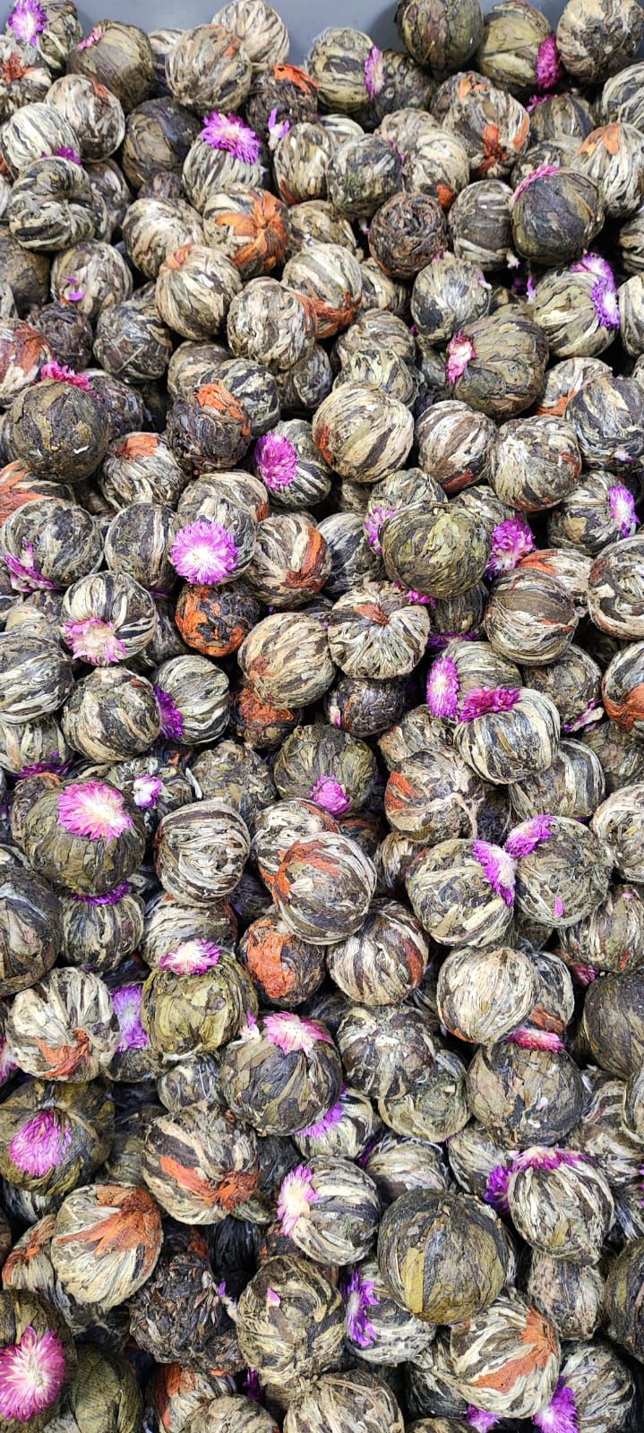 бутон из листьев зеленого чая, в который вплетены ароматные цветы.