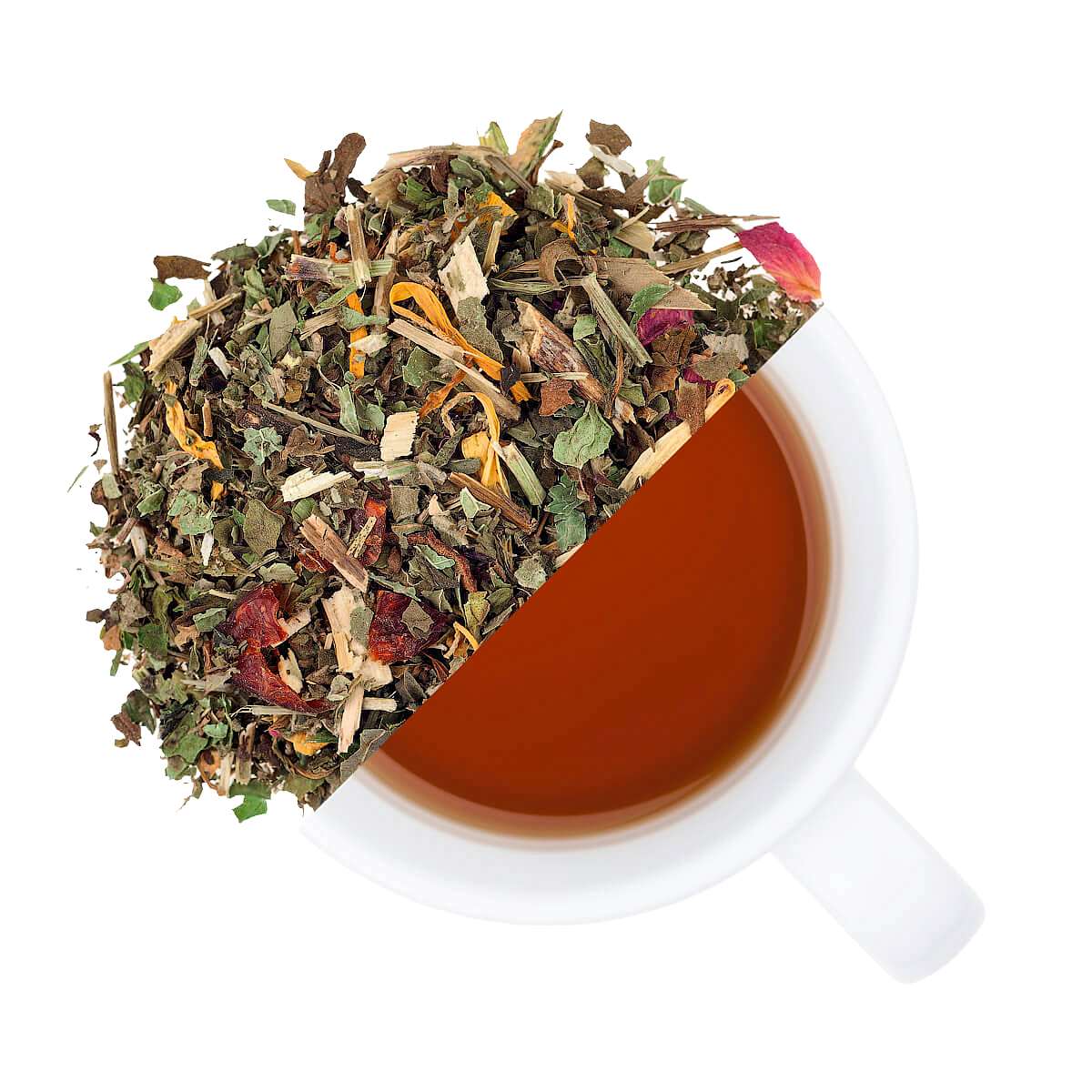 АРОМАТНЫЙ СБОР ИЗ ЕЖЕВИЧНЫХ ЛИСТОЧКОВ, ЛЕПЕСТКОВ РОЗЫ, ЯГОД ШИПОВНИКА, КАЛЕНДУЛЫ, МЯТЫ И МЕЛИССЫ.