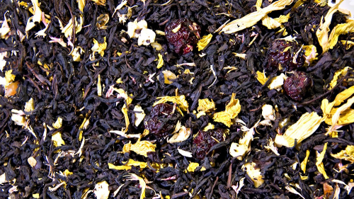 Черный чай с цветами вереска, липовым цветом, лепестками василька, ягодами малины и земляники рождает замечательную композицию с манящим сладким ароматом луговых цветов, лесных ягод и меда.