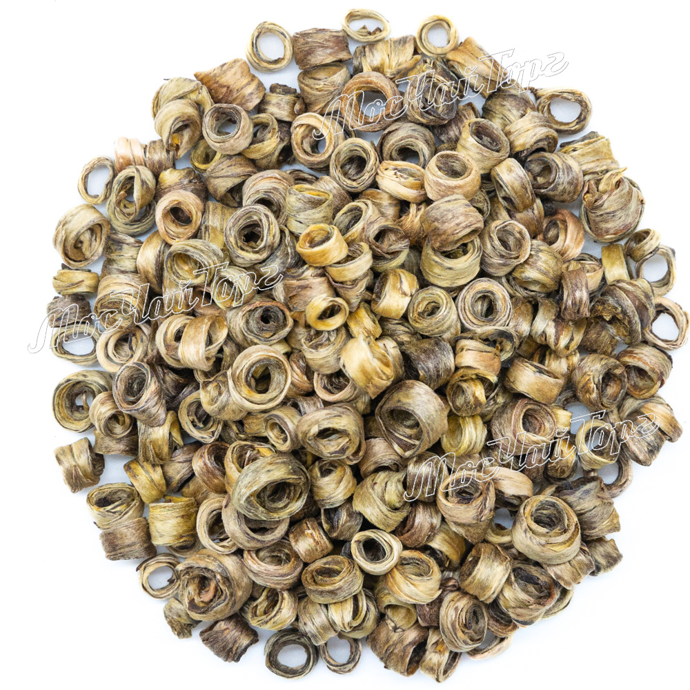Жасминовый чай "Нефритовые кольца" изготавливается из молодых чайных почек, скрученных в изящные кольца, которые раскрываются при заваривании, освобождая насыщенный аромат жасмина. Это гарантия высочайшего качества и подлинности продукта.