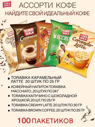 Torabika Macchiato − крепкий кофе с мягким вкусом, с добавлением эспрессо и новозеландского молока, способный взбодрить и зарядить энергией на весь день.